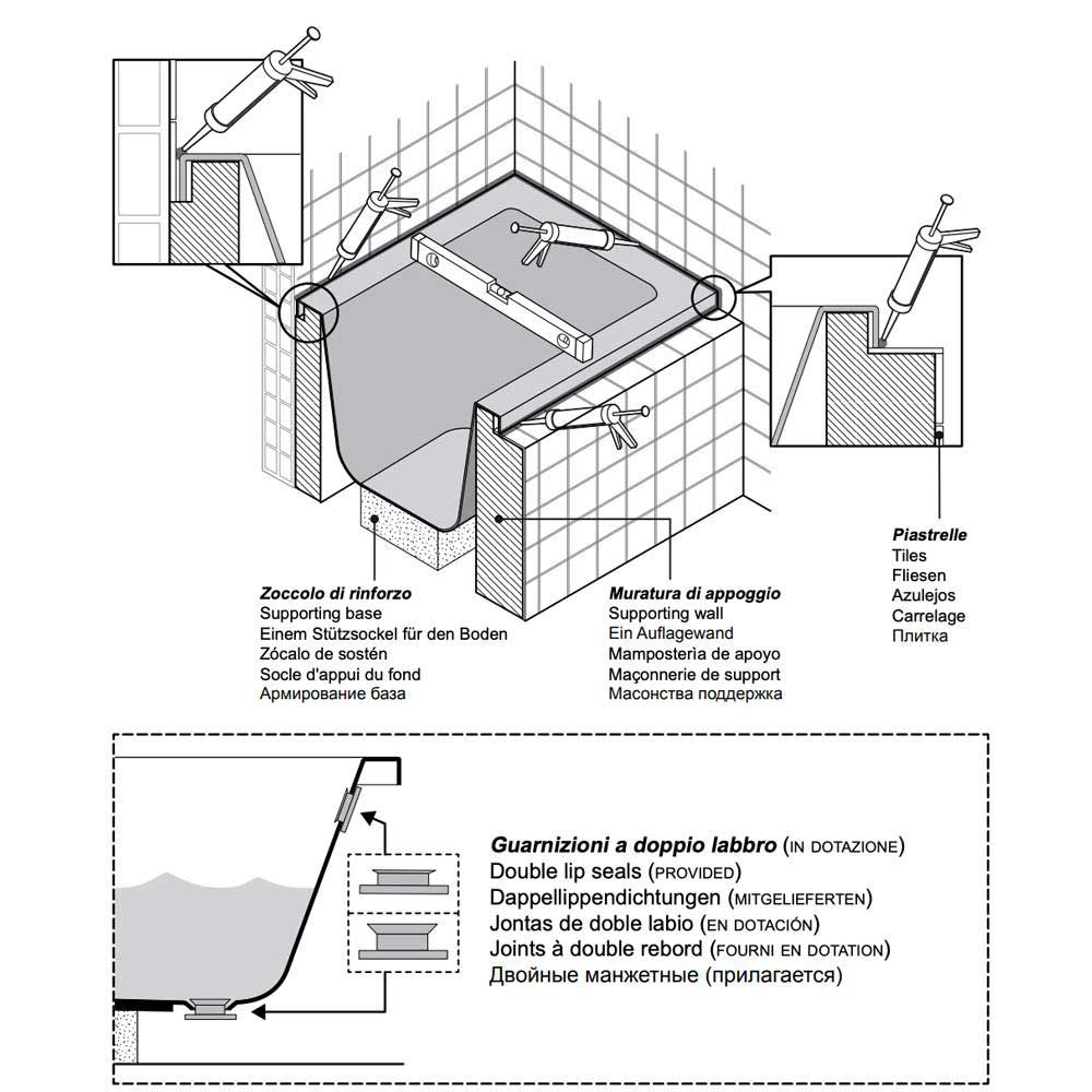 Vasca fornita di 1 Telaio, 1 Pannello lungo e 1 pannello corto. Pronta per essere montata. Scarica la scheda tecnica completa scansionando il QRCode