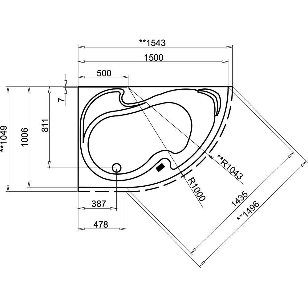 | 0015402 | VASCA ASIMMETRICA GEA CON TELAIO E PANNELLI 150x100 cm - DX