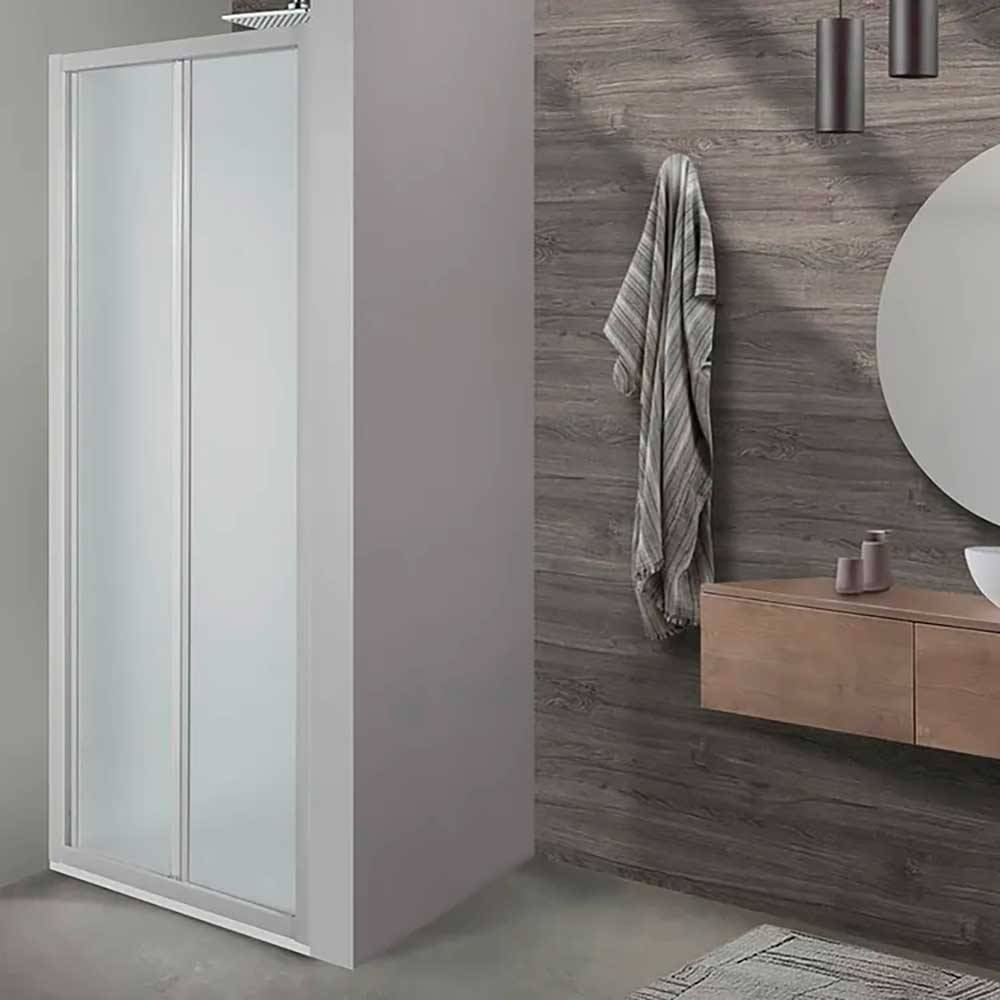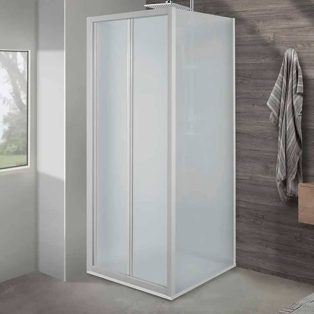 Cabina doccia reversibile apertura dx/sx. Scorrimento su cuscinetti. Struttura in alluminio con profili cromati. Finitura pannello Stampato C 3 mm. Nota: Disponibile lato fisso nostro art. 00346. Non è consigliato l'utilizzo di due pareti fisse.