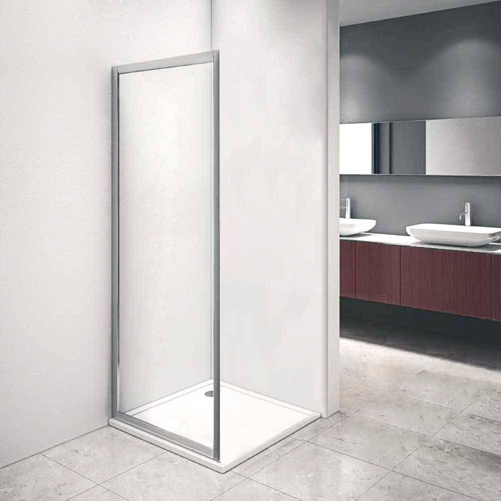 Profilo in alluminio pesante cromato. Finitura Cristallo: 3 mm TRASPARENTE. Altezza 185 cm. Nota Bene: Tutti i modelli di Box Doccia Smeralda, abbinati con una parete Fissa aumentanto il proprio ingombro di 1,5 cm.