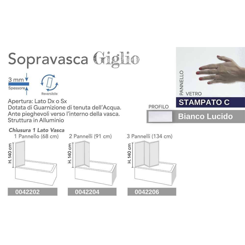 | 0042206 | PARETE VASCA 'GIGLIO' CRISTALLO Sp.3 mm PROFILO BIANCO 3 ante 134 H.140 Ch. 1 lato G 11 C BI