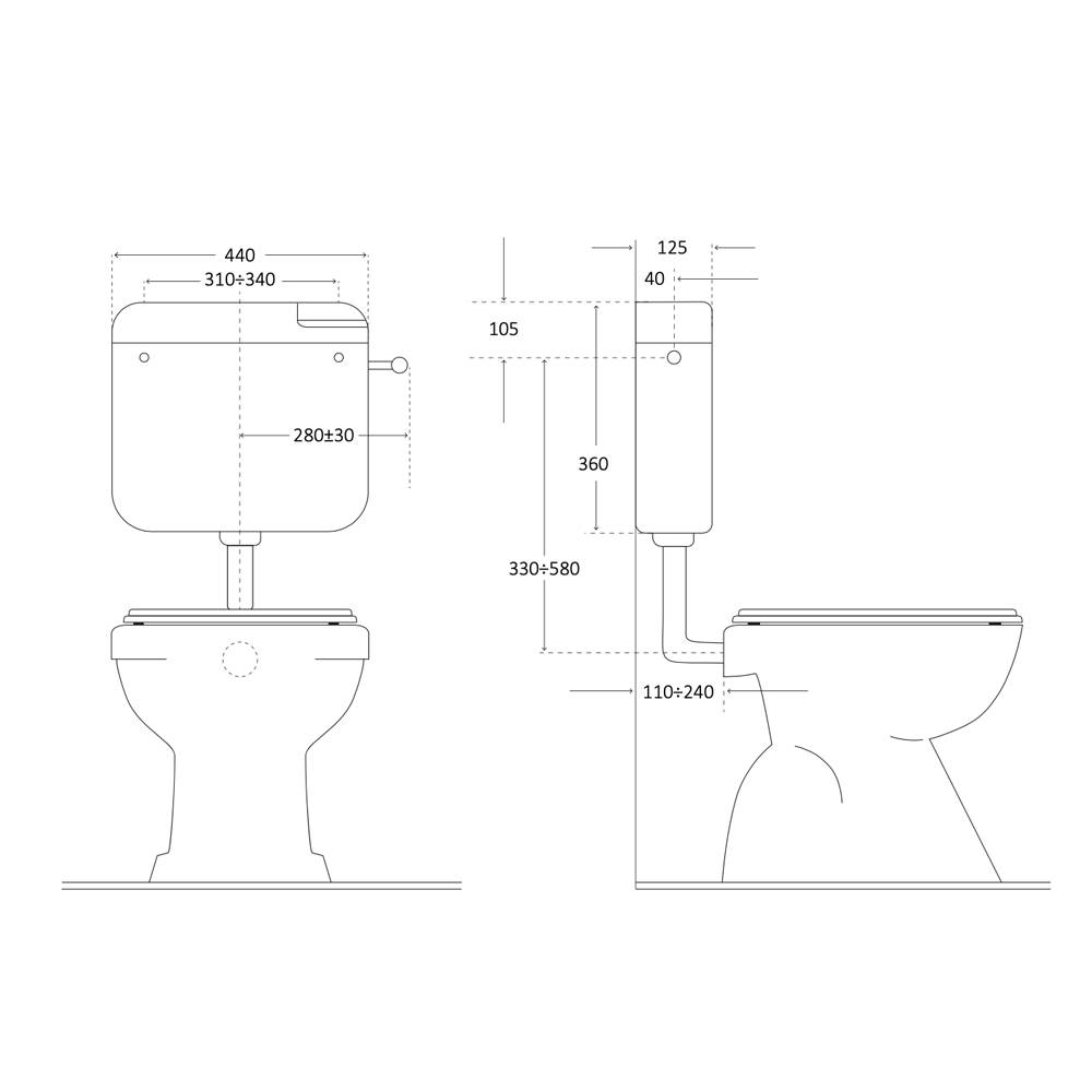 Cassetta ultra-piatta per installazione esterna. Installazione bassa a zaino o media posizione. Scarico singolo, con tasto economizzatore d'acqua start/stop. Scocca con trattamento anti-invecchiamento. Capacità 8 litri con possibilità di regolazione. Omologazione 7 litri per normativa CE EN 14055. Coibentazione anti-condensa ed insonorizzante. Allacciamento idrico destro, sinistro o posteriore centrale. Galleggiante 3/8" compatto, rapido e silenzioso. Completa di tubo