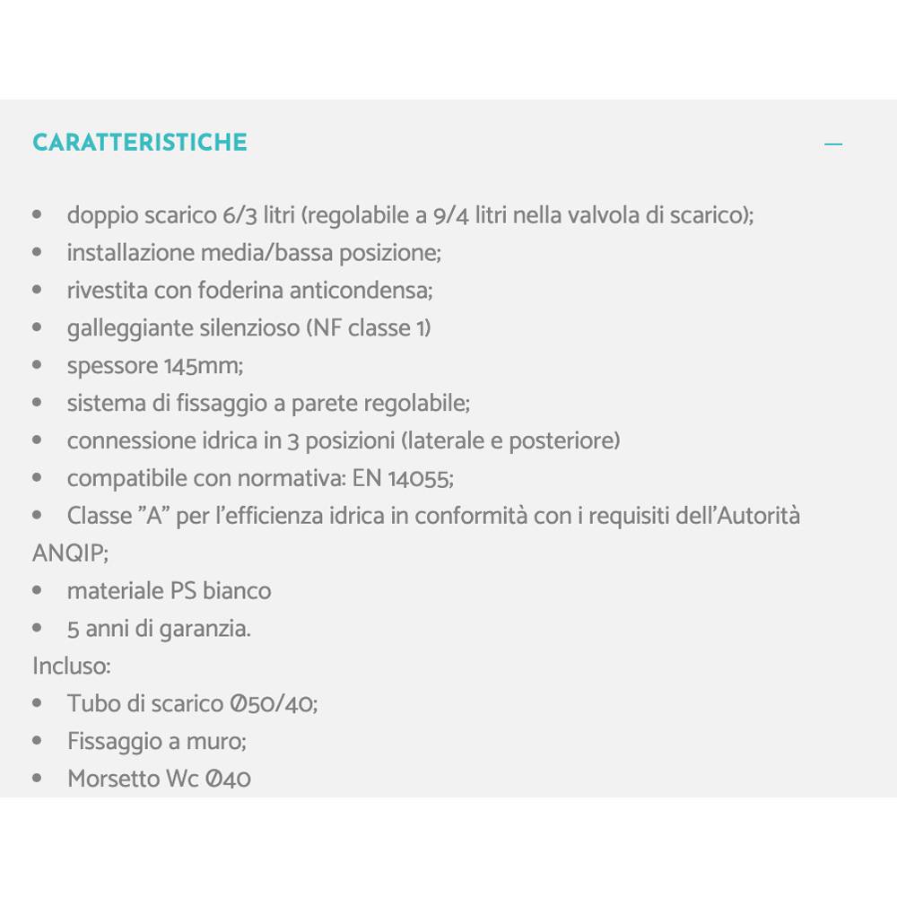 | 0051904 | CASSETTA DI SCARICO A ZAINO "SMERALDO" SENZA RUBINETTO Monotasto 401501