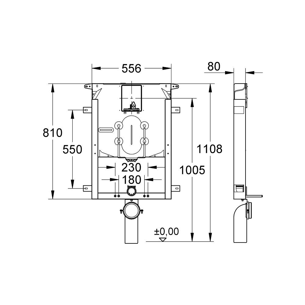 | 00602 | CASSETTA DI SCARICO AD INCASSO "UNISET" GROHE PER VASO SOSPESO Doppio Scarico 38729000
