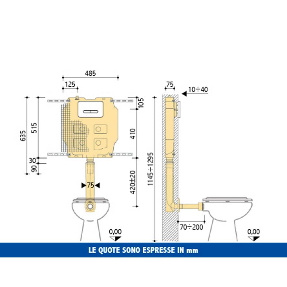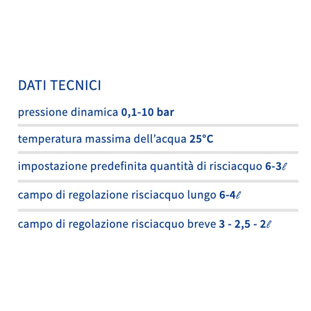 Cassetta 6 lt. Spessore cm 7,5. Canotto in dotazione. Tubo di risciacquamento cm 35 x 11 regolabile in altezza (2+2). *Nuova cassetta in produzione dal 2013 con la possibilità di installare placche di soli mm 4,7 di profondità. PLACCA DA ORDINARE SEPARATAMENTE