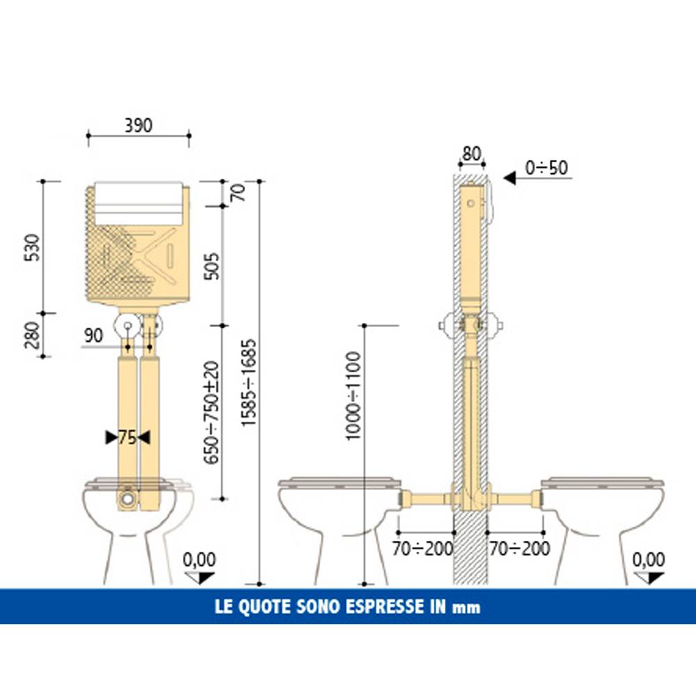 | 0062402 | CASSETTA DI SCARICO AD INCASSO IN RAME DOPPIO TASTO 10 lt + Placca 80007520