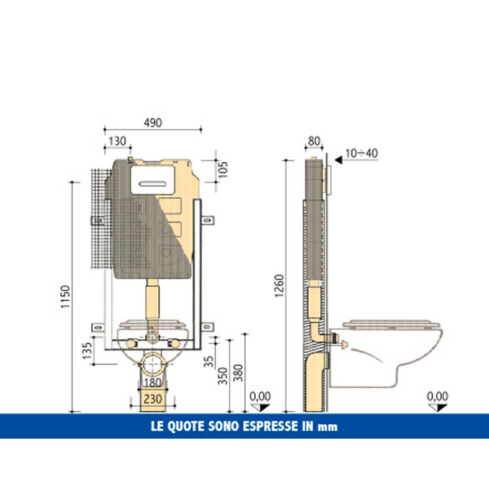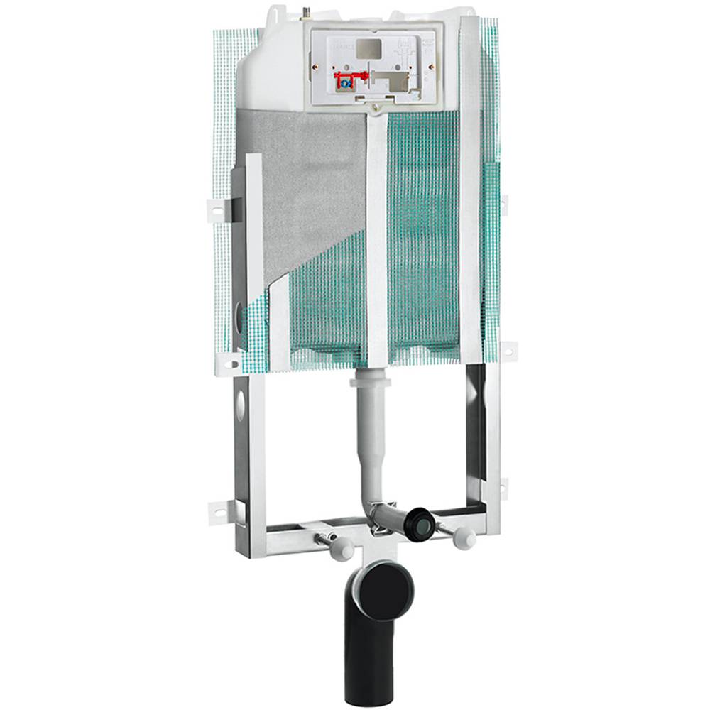 Telaio vaso sospeso con cassetta in polietilene, isolata contro la condensa, spessore totale 8 cm con comando frontale. 9 lt. Montaggio rapido in pareti in muratura o davanti alle stesse. PLACCA DA ORDINARE SEPARATAMENTE.