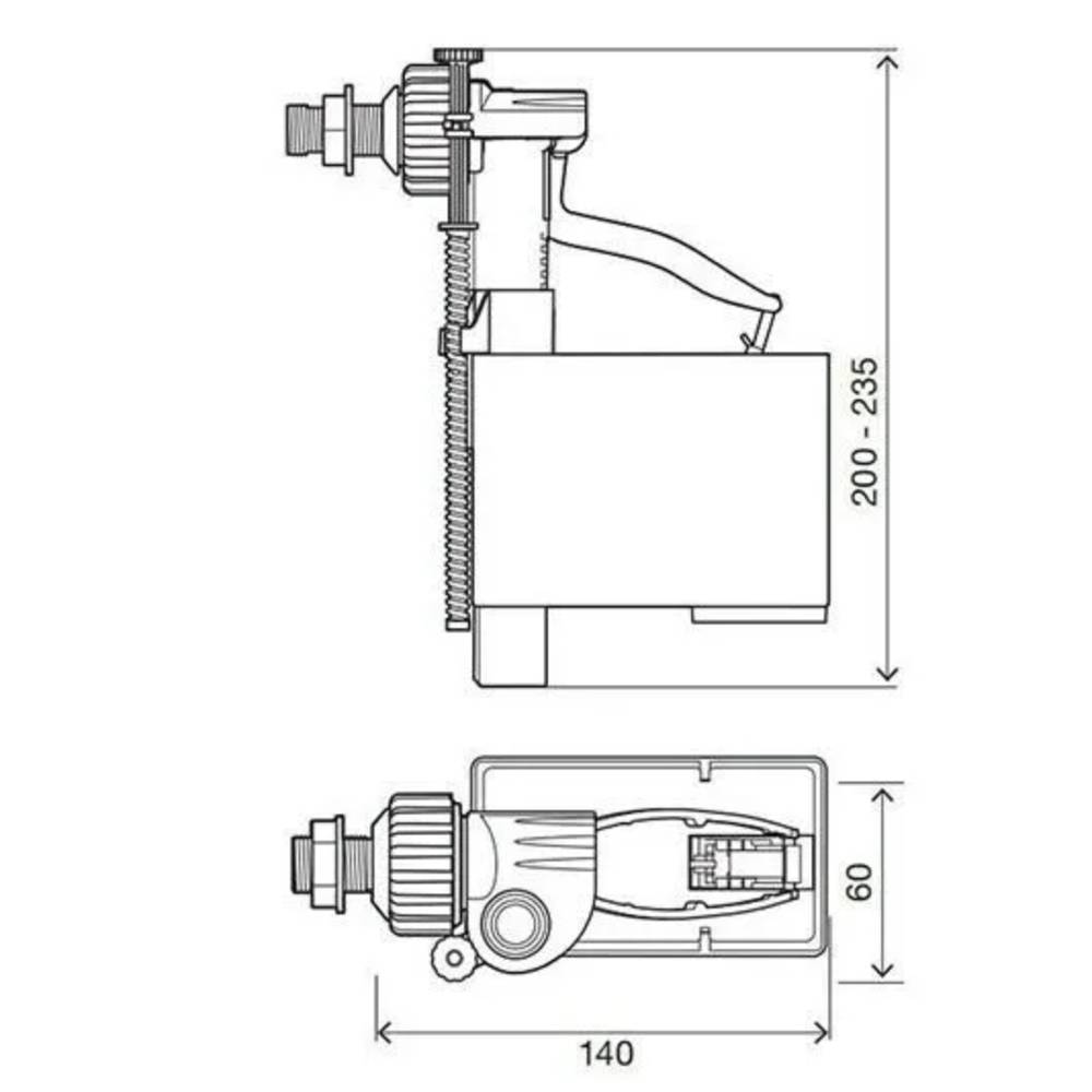 Connessione laterale. Funzione anti-backFlow. Sistema di chiusura a pistone. Silenzioso (CLASSE NF I). Pressione dinamica: 0,5-10 bar. Pressione statica: 16 bar. Galleggiante certificato NF/KIWA/DIN. Garanzia 5 anni. INCLUDE: Guarnizione conica e dado in plastica