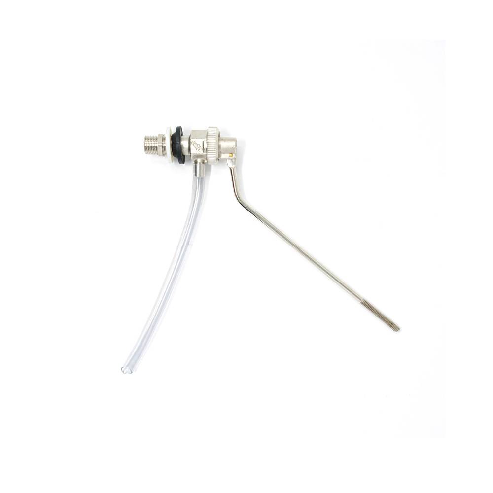 Articolo atto alla regolazione del livello dell'acqua, realizzato con corpo completamente in ottone nichelato ed assemblato manualmente con materie plastiche di altissima qualità.