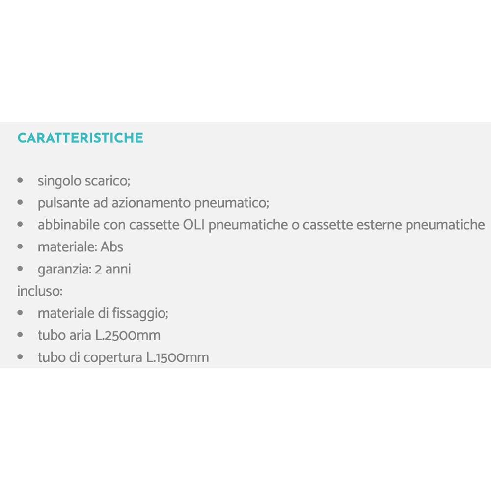 Pulsante ad azionamento pneumatico, abbinabile con cassette OLI pneumatiche o cassette esterne pneumatiche. Scarico singolo.