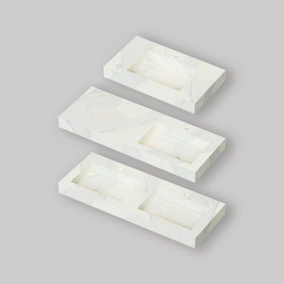 0121612 | LAVABO IN HPL "LEONARDO" EFFETTO MARMO BIANCO CALACATTA 120 cm - Doppia Vasca