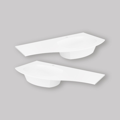 0125604 | LAVABO IN CERAMICA BIANCO OPACO ASIMMETRICO PER MOBILE DA BAGNO "ARMONIA" 105 cm - Vasca Sinistra