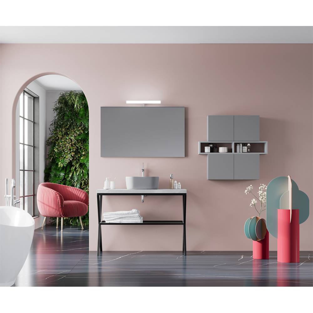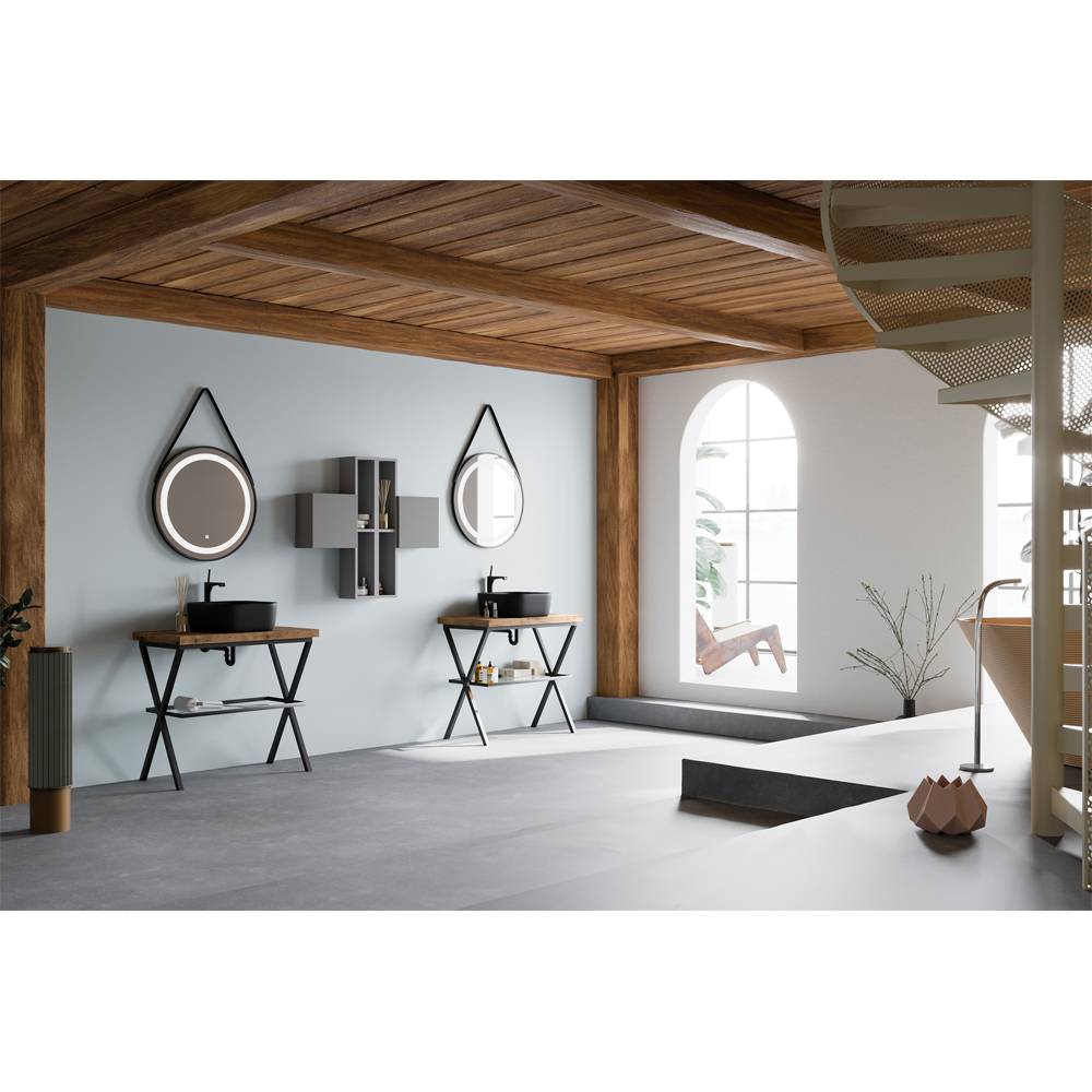 Info: le composizioni da 120 cm si possono ottenere con la giunzione di 2 cavalletti da 60 cm. Da abbinare con i nostri mensoloni orizzontali disponibili nelle colorazioni Beton, Rovere Fossile e Rovere Naturale. Con mensola in vetro, per appoggio oggetti da bagno