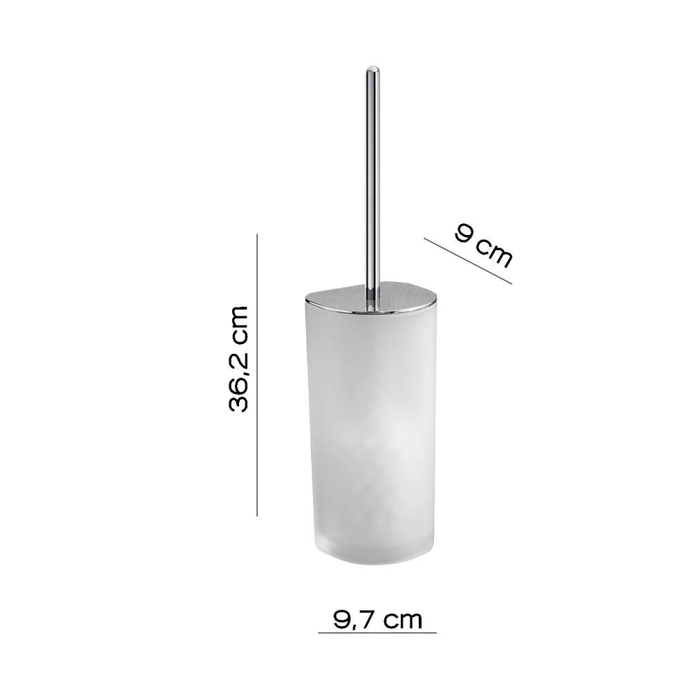 Con ciuffo in setole e contenitore in vetro satinato. Dimensioni: 9,7 x 9 x 36,2 cm