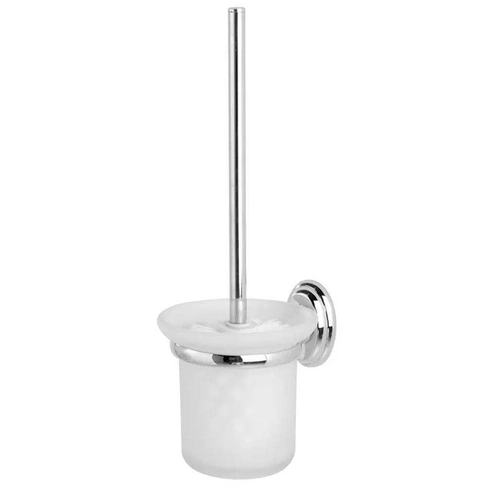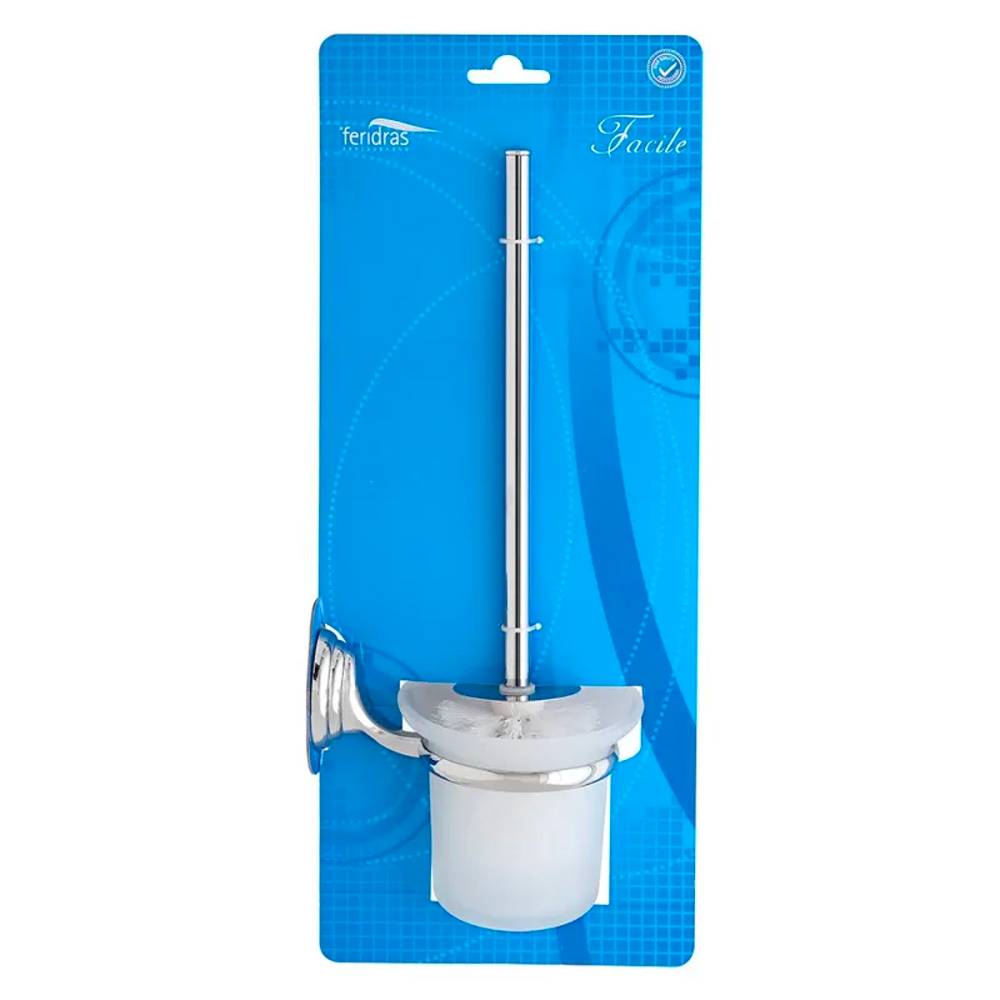 Fornito in Eco Card. Portascopino in Cromall e Vetro Frost con piastrina di fissaggio in acciaio antiruggine, e tasselli inclusi nella confezione.