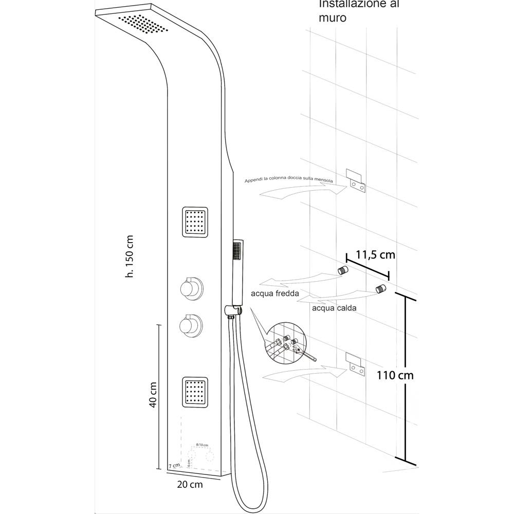| 0277402 | PANNELLO DOCCIA INOX "VEGA" Versione Idro