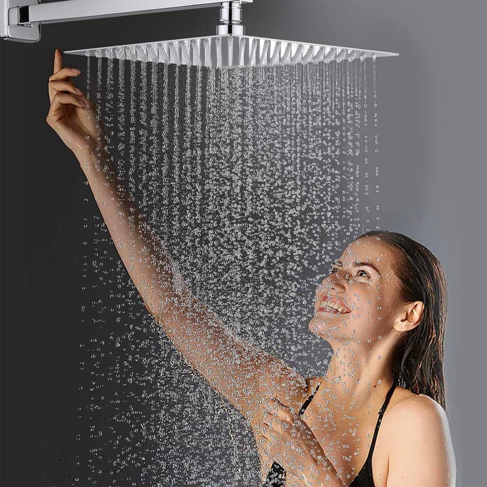 Soffione doccia Quadro in Inox super-mirror. Anticalcare. NON Ispezionabile. Portata: 6 l/m Attacco a snodo 1/2". DM 174.