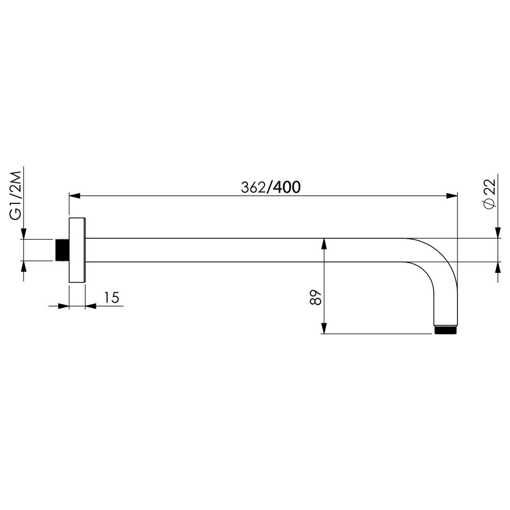 Braccio doccia tondo Ø 22 mm. Attacchi: 1/2"M x 1/2" M.