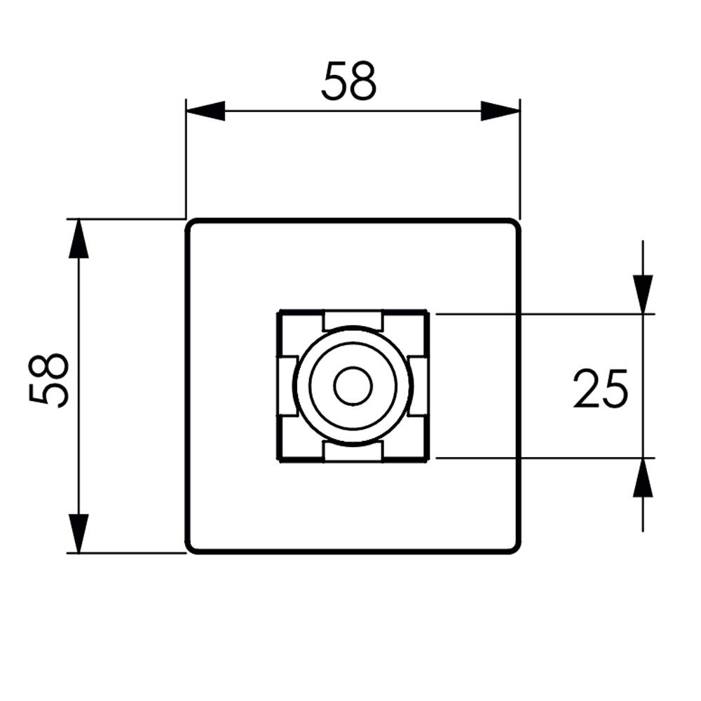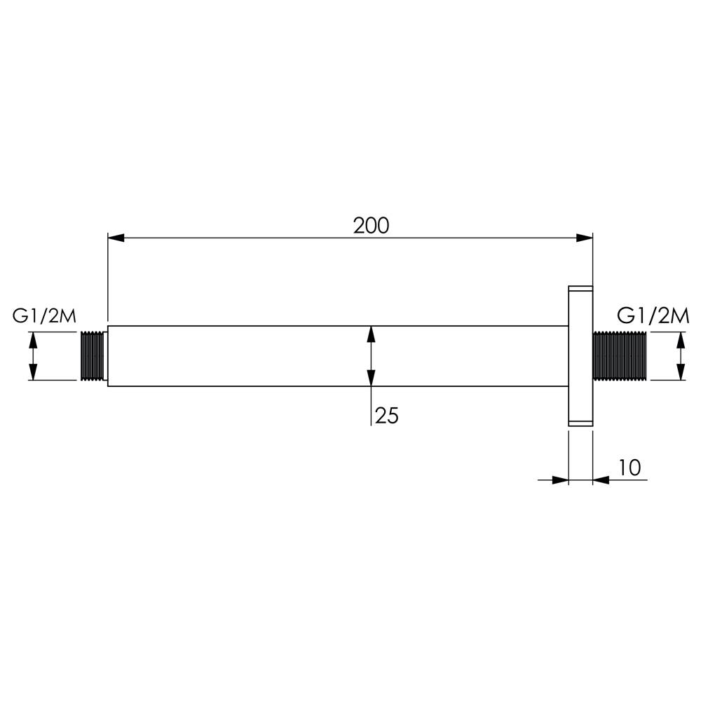 Braccio doccia quadro per installazione a Soffitto L. 200 mm, 25x25 mm. Attacchi 1/2"M x 1/2"M.