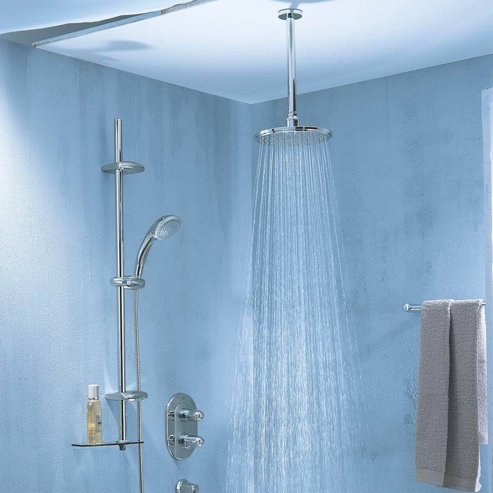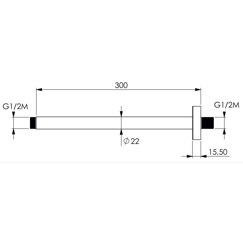 Braccio doccia tondo per installazione a Soffitto. L. 300 mm, Ø22 mm. Attacchi 1/2"M x 1/2"M.