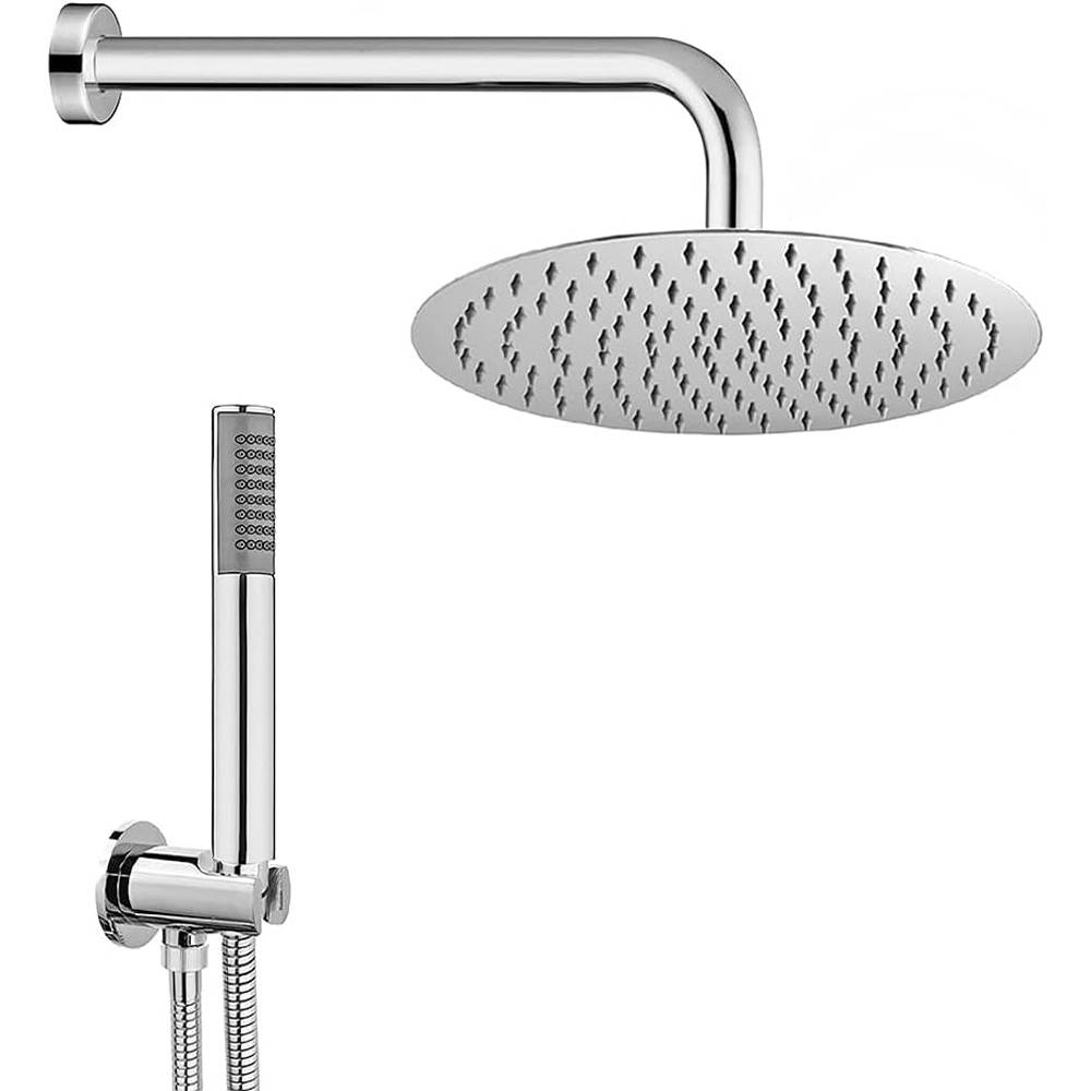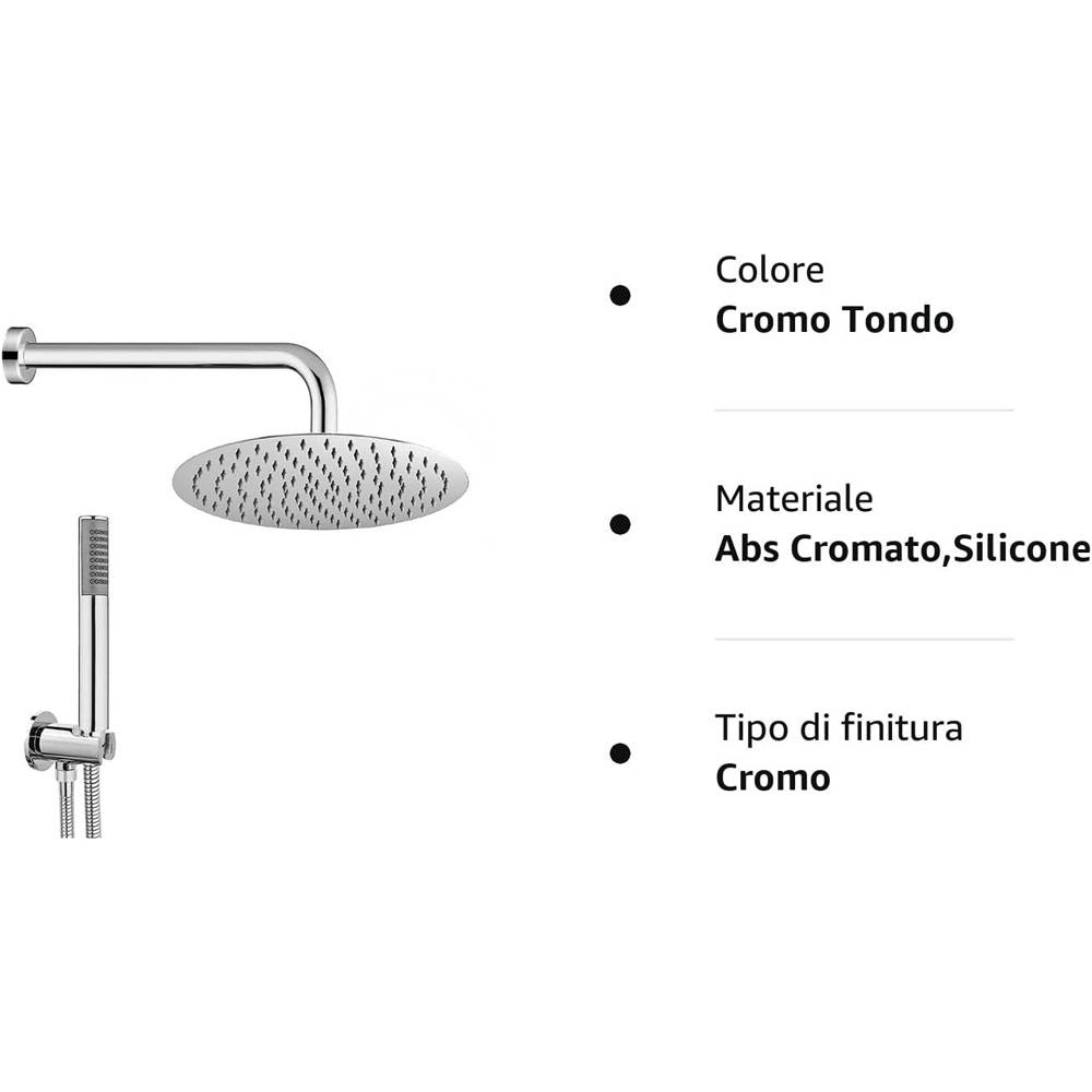Set Composto da: - Presa acqua 1/2" - 1/2" in ottone;- Doccetta in ABS; - Laccio doccia in gomma da 150 cm; - Braccio doccia in Acciaio cm 30; - Soffione Slim H. 2 in acciaio Inox (misura variabile)