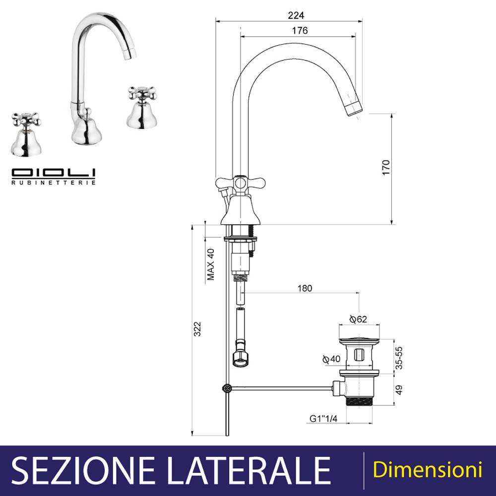| 03252 | BATTERIA LAVABO BOCCA ALTA ROME Cromo + Piletta 1"1/4 2955
