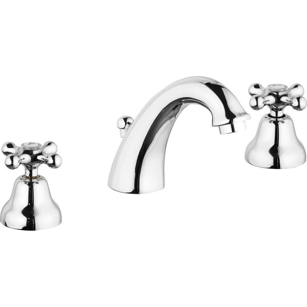 Rubinetteria per lavabo a 3 Fori Fornito completo di piletta di Scarico da 1"1/4 e flessibile di raccordo idrico da 1/2". Con canna bassa, H. 120 mm. Finitura: Cromo Per renderlo a chiusura ceramicata ordinare nostro codice: 0423202