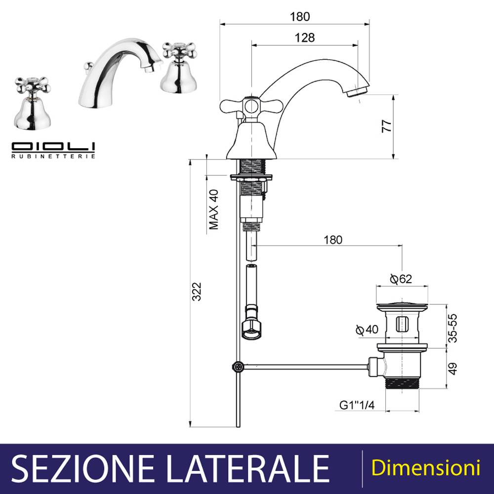 | 03254 | BATTERIA LAVABO BOCCA BASSA ROME Cromo + Piletta 1"1/4 2956