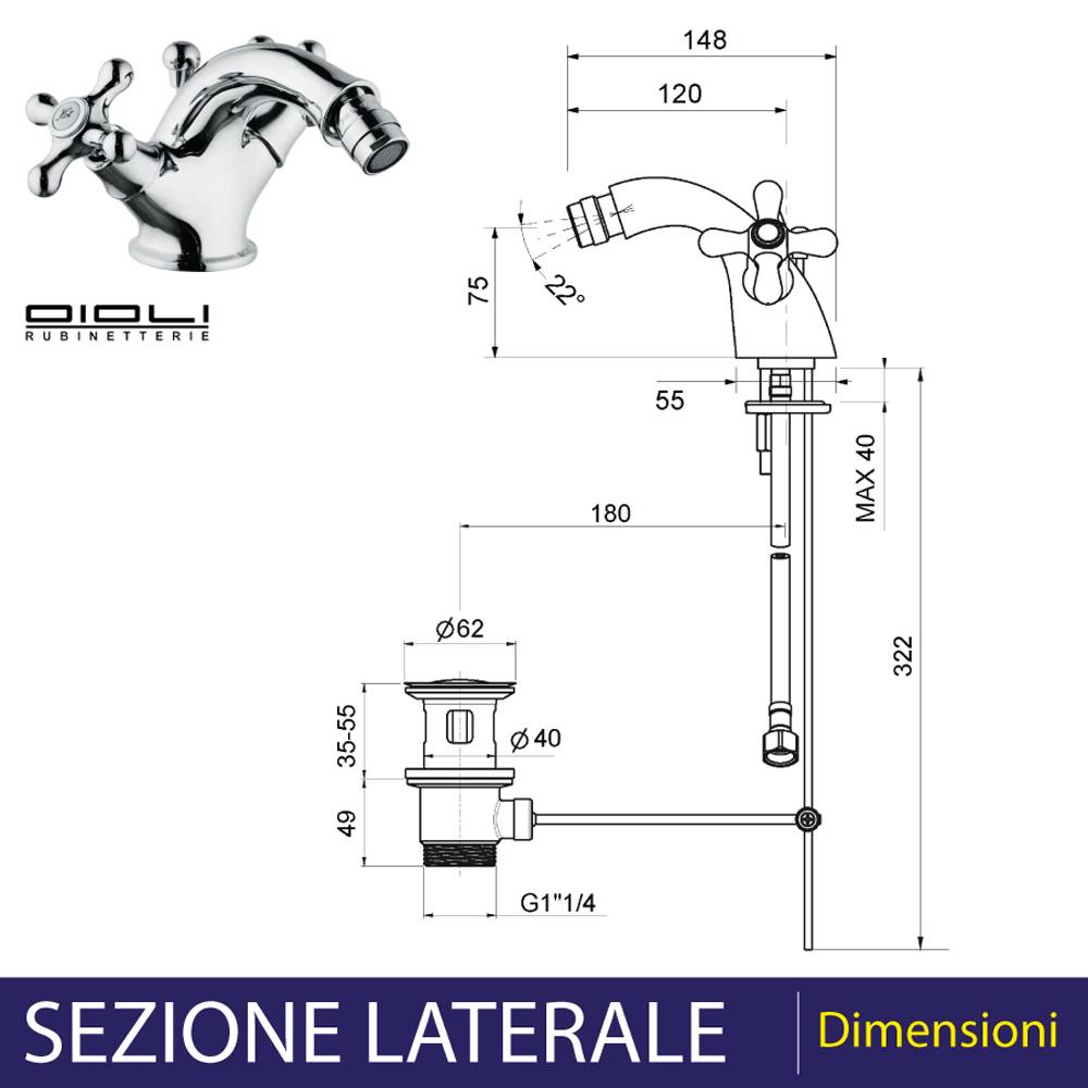 | 03260 | MISCELATORE BIDET MONOFORO LUSSO ROME Cromo + Piletta 1"1/4 2975
