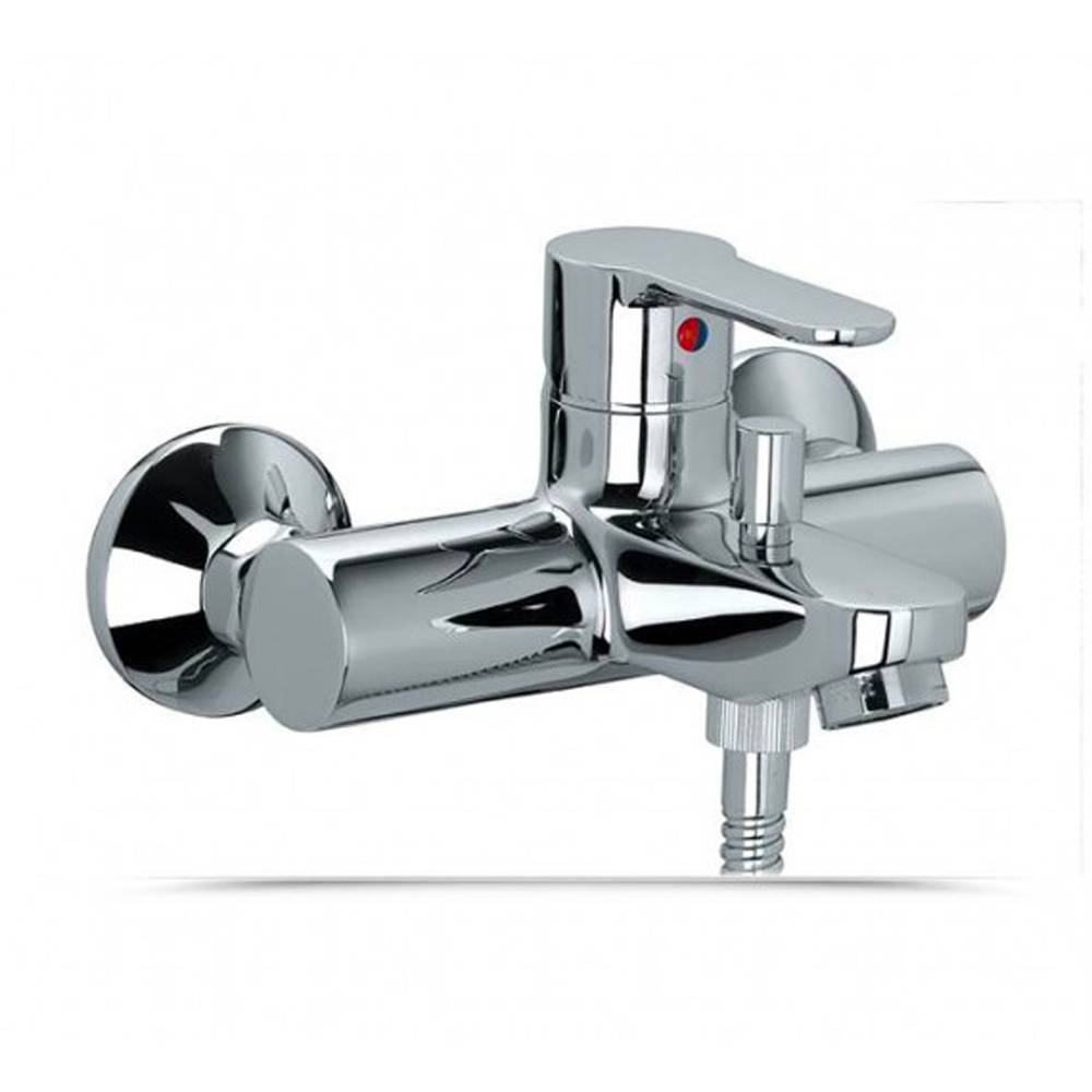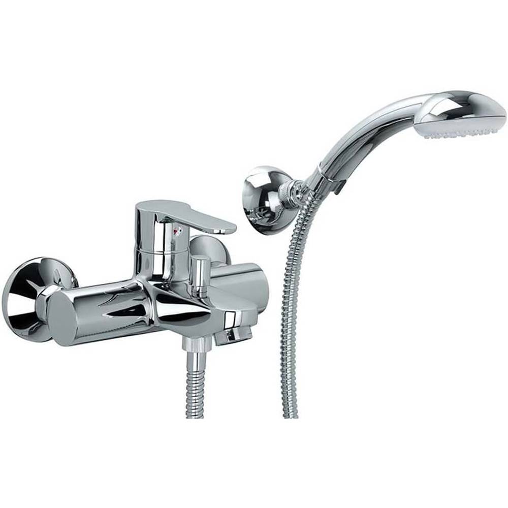 Miscelatore vasca/doccia con deviatore. Fornito completo di: - Aereatore M28x1; - Set 2 eccentrici 1/2"x3/4" G; - Rosoni; - Doccetta; - Flessibile doccia. Con supporto a muro snodato. Cartuccia di ricambio nostro codice: 04190
