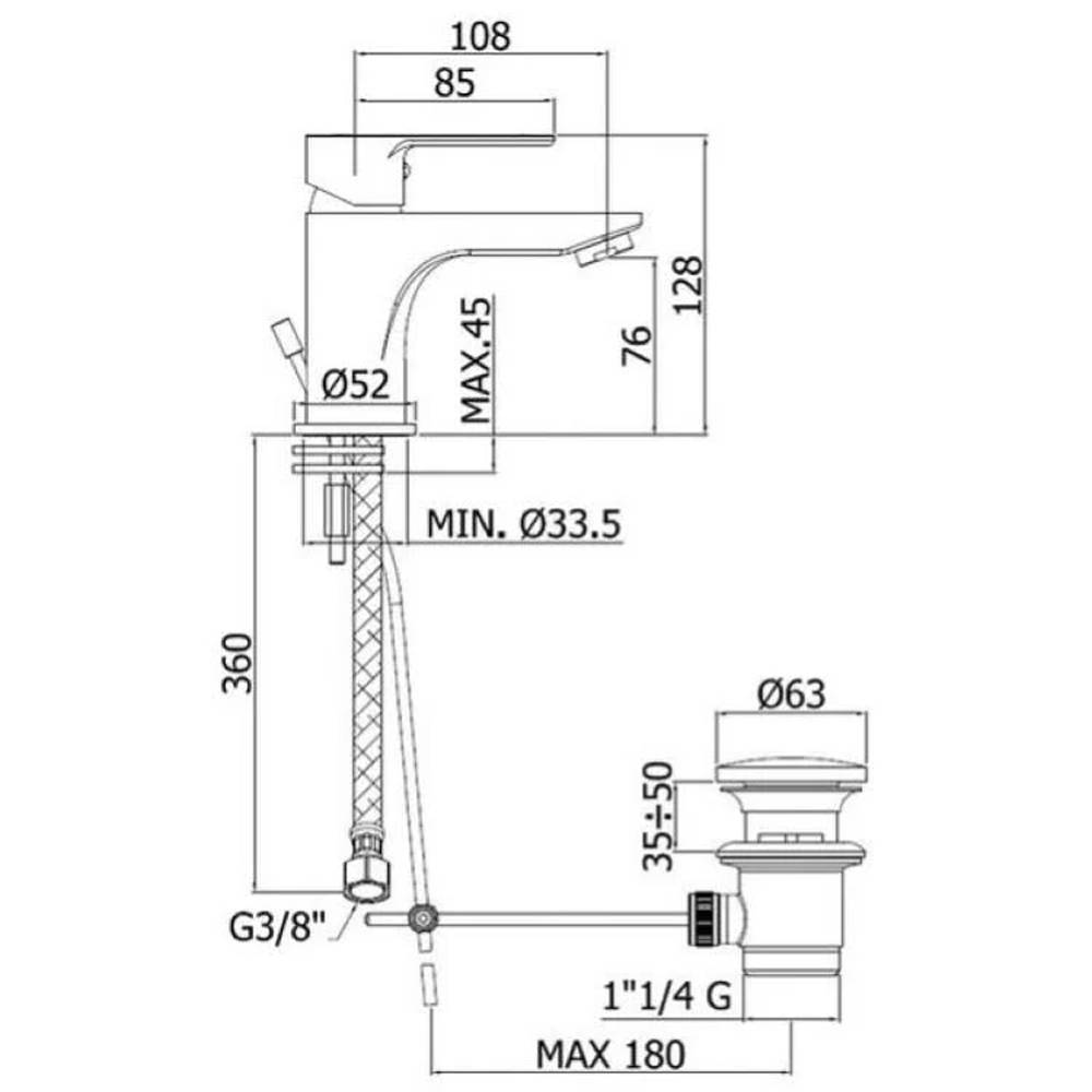 | 03302 | MISCELATORE LAVABO "BLU" Cromo + Piletta 1"1/4 BLU075CR
