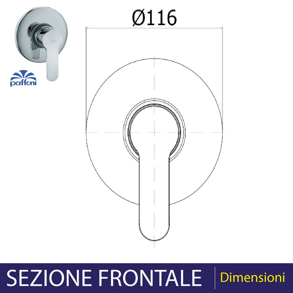 Miscelatore incasso doccia ad 1 uscita. Fornito completo di: - Piastra in metallo Ø 116 mm; - Attacchi 1/2" G. Senza deviatore. Cartuccia di ricambio nostro codice: 04192