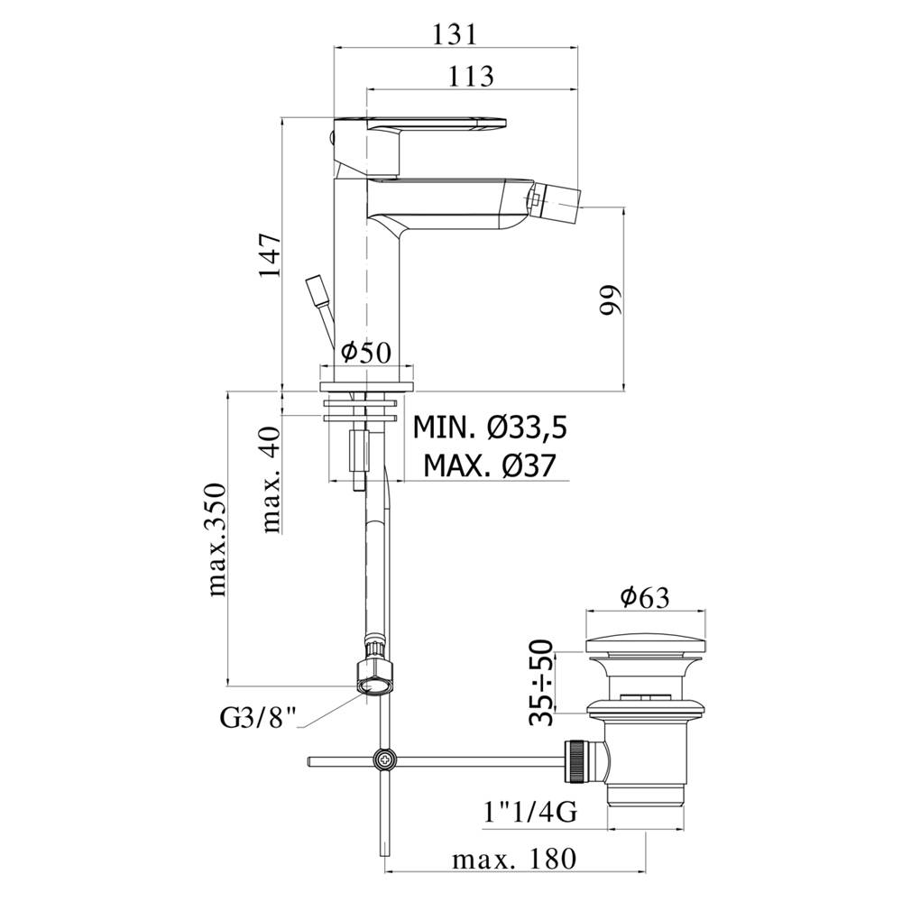 | 0335802 | MISCELATORE BIDET "CANDY" Cromo + Piletta 1"1/4 CA135CR