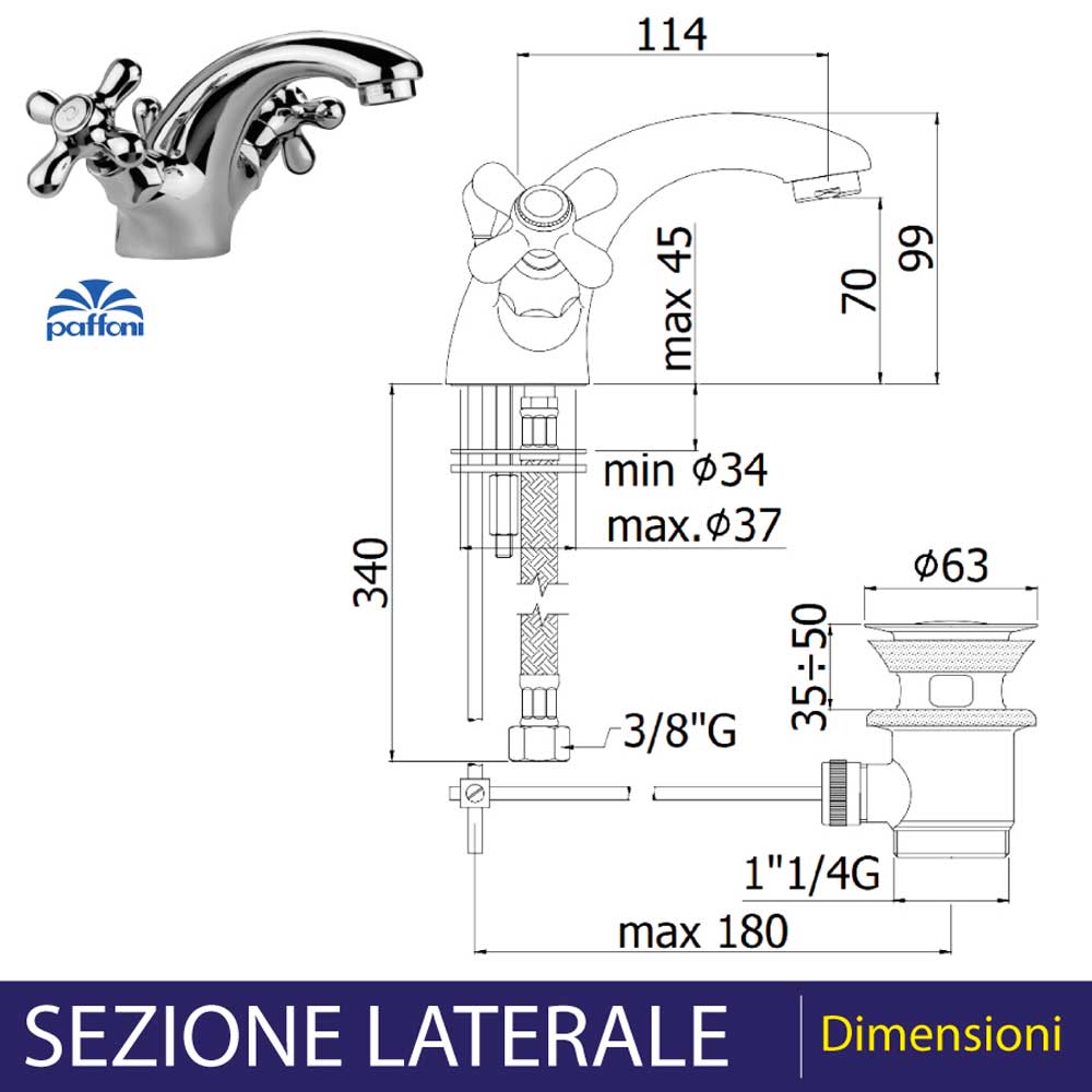 | 0345604 | GRUPPO MONOBLOCCO LAVABO IRIS Cromo + Piletta 1"1/4 IRV075CR