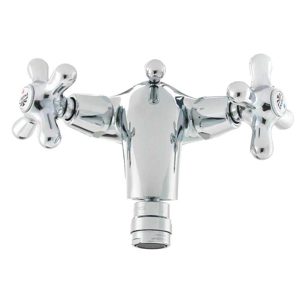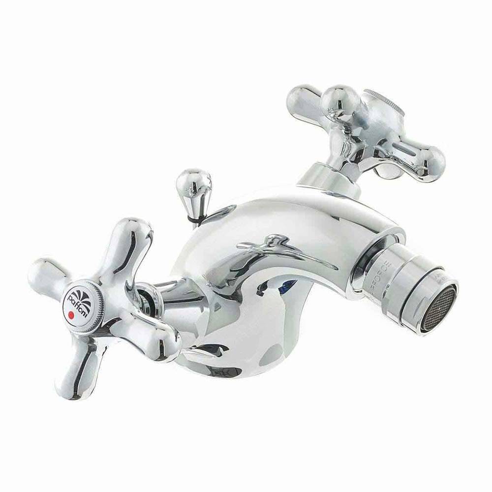 Serie Iris. Rubinetto monoforo Bidet. Rubinetteria stile Tradizionale, con manopole a Croce. Fornito completo di: - Piletta di scarico automatico 1"1/4 G senza attacco catenella; - Aereatore M24x1"; - Set 2 Flessibili Inox 3/8" G. Vitoni in ceramica di ricambio nostro articolo 04186.