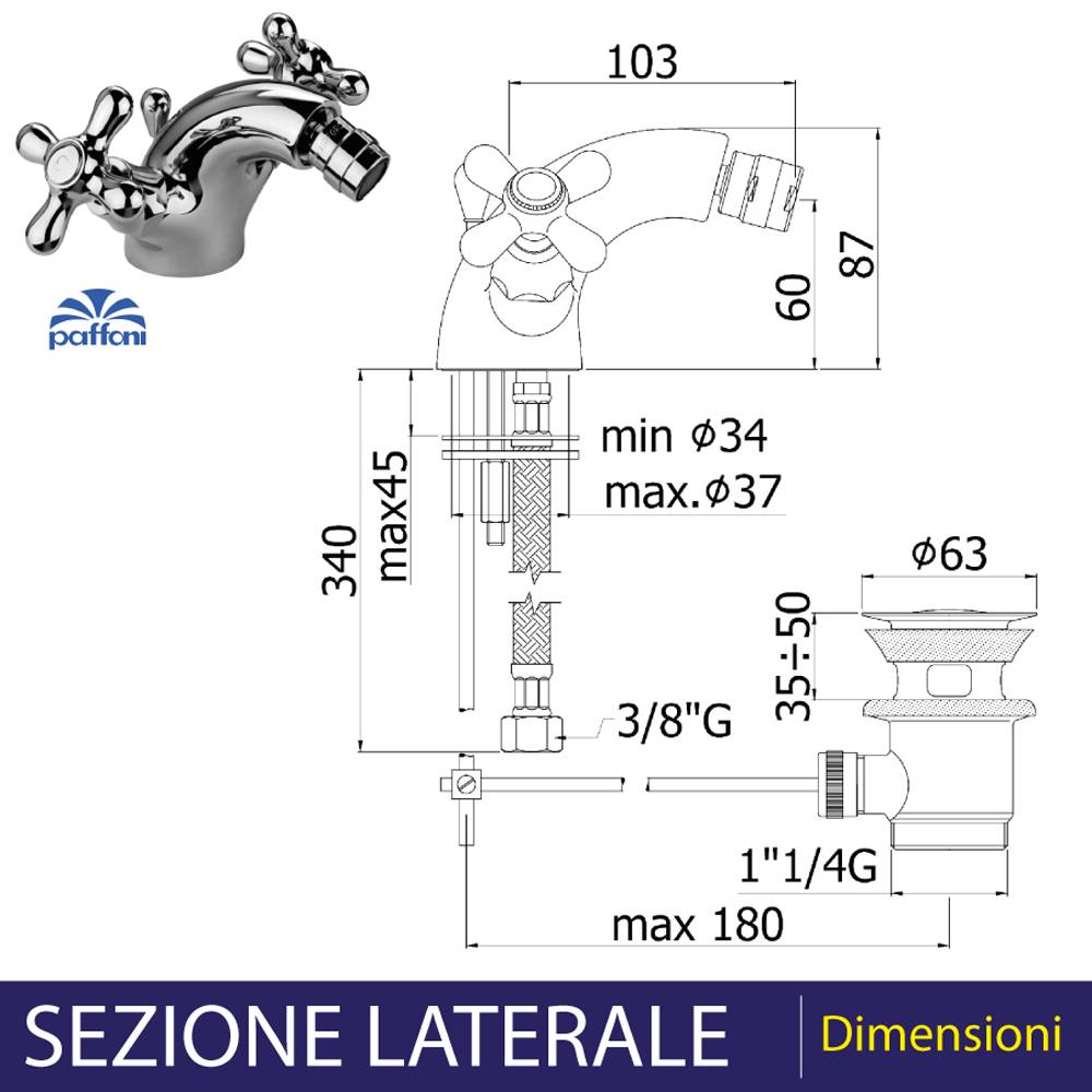 | 0346004 | GRUPPO MONOBLOCCO BIDET IRIS Cromo + Piletta 1"1/4 IRV135CR