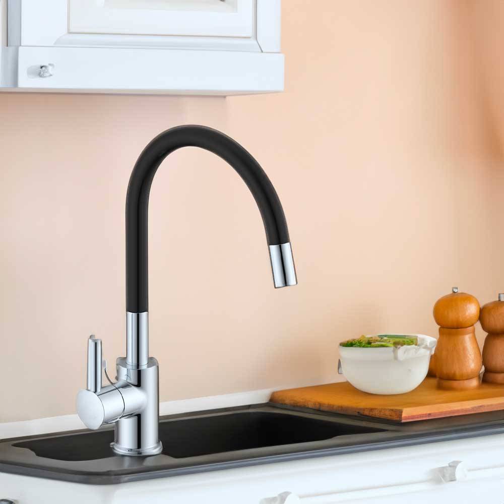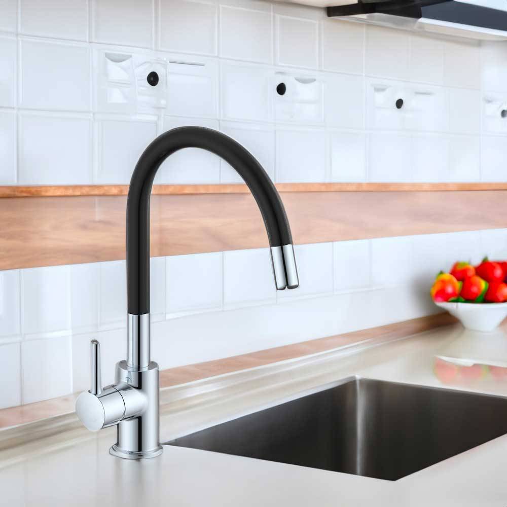 | 03538 | MISCELATORE LAVELLO A CANNA IN GOMMA FLESSIBILE "SNAKE" NERO - SNAKE000N