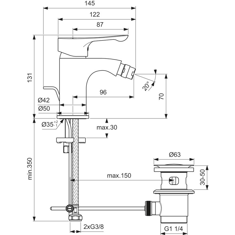 | 0357002 | MISCELATORE BIDET ALPHA Cromo + Piletta 1"1/4 BC652AA