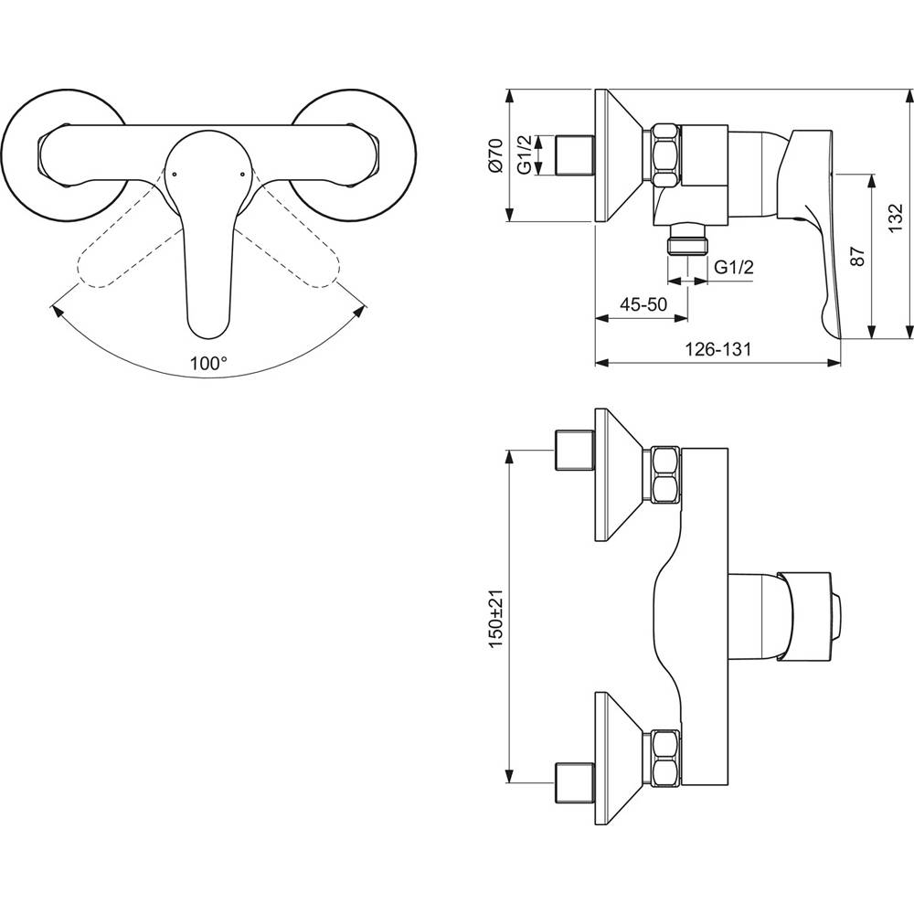 Miscelatore monocomando esterno per Doccia. Fornito completo di: - Raccordi eccentrici per interasse da 129 a 171 mm. - Cartuccia da 35 mm con limitatore della temperatura. Attacchi da 1/2". Non è dotato di accessori doccia. Cartuccia di ricambio nostro codice 04208.