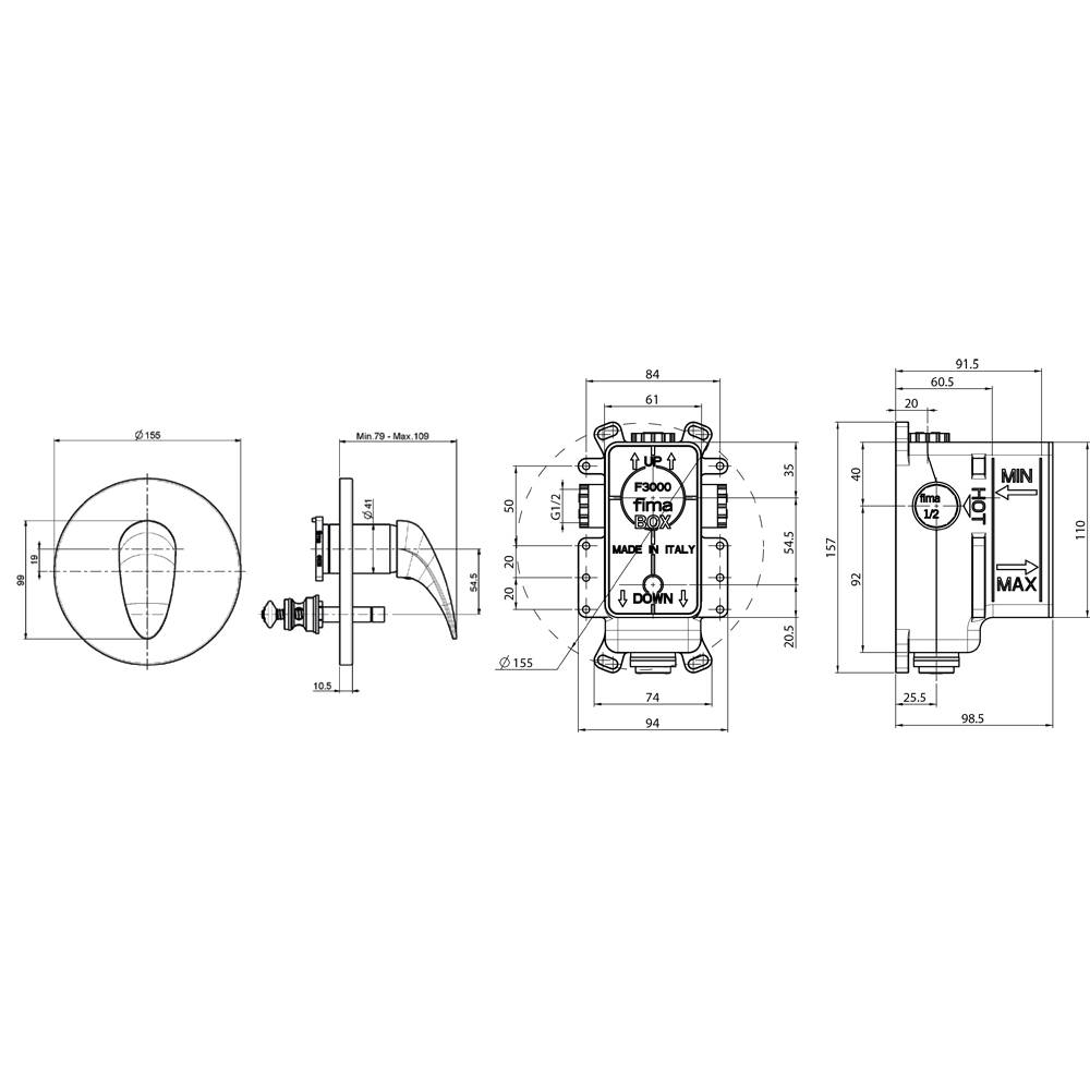 Cartuccia F2036, nostro codice 04242. Ø 35mm Fornito completo di: - FIMA BOX; - Parte esterna "SERIE 18", Ø155 mm