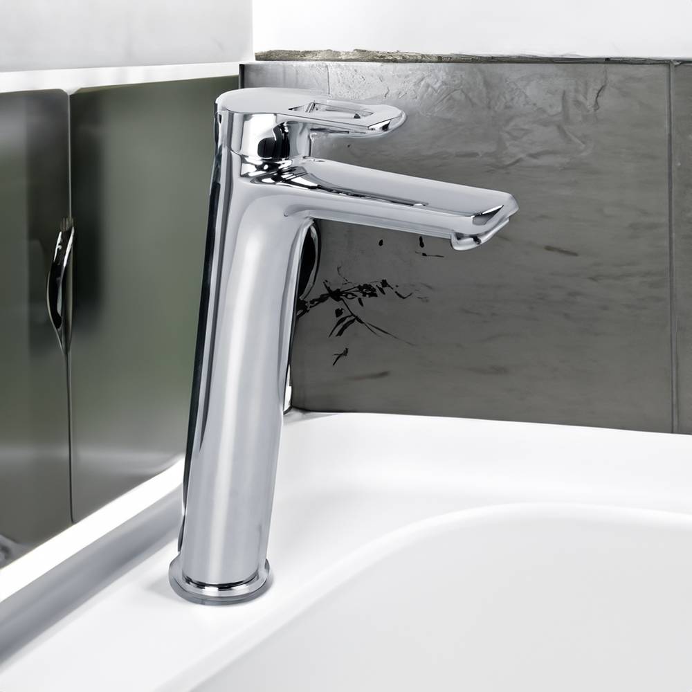 | 03854 | MISCELATORE LAVABO "SERIE 4" A CANNA ALTA CON LEVA APERTA Cromo + Piletta 1"1/4 F3771/HCR