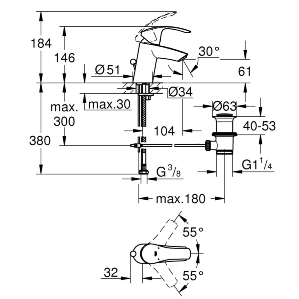| 03932 | MISCELATORE LAVABO "EUROSMART NEW" Cromo + Piletta 1"1/4 33 265 002