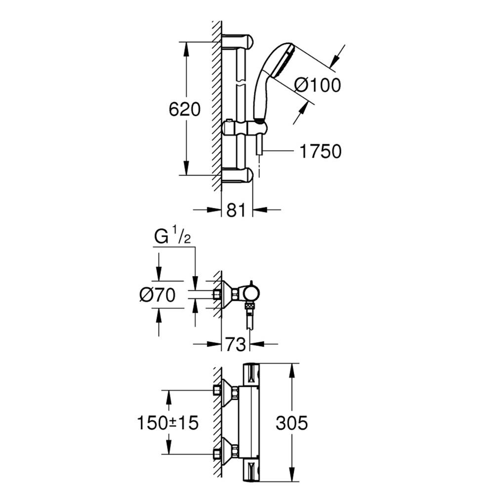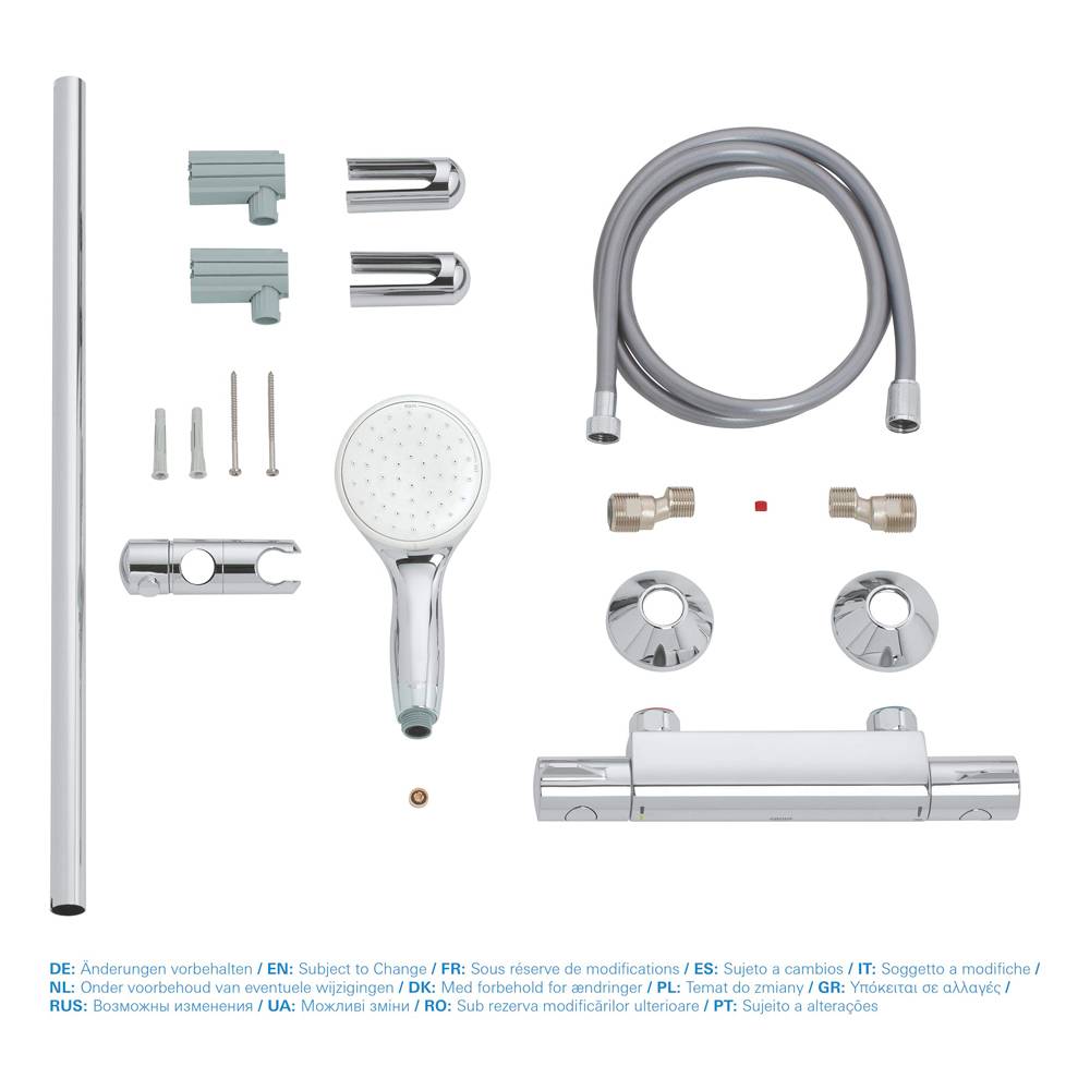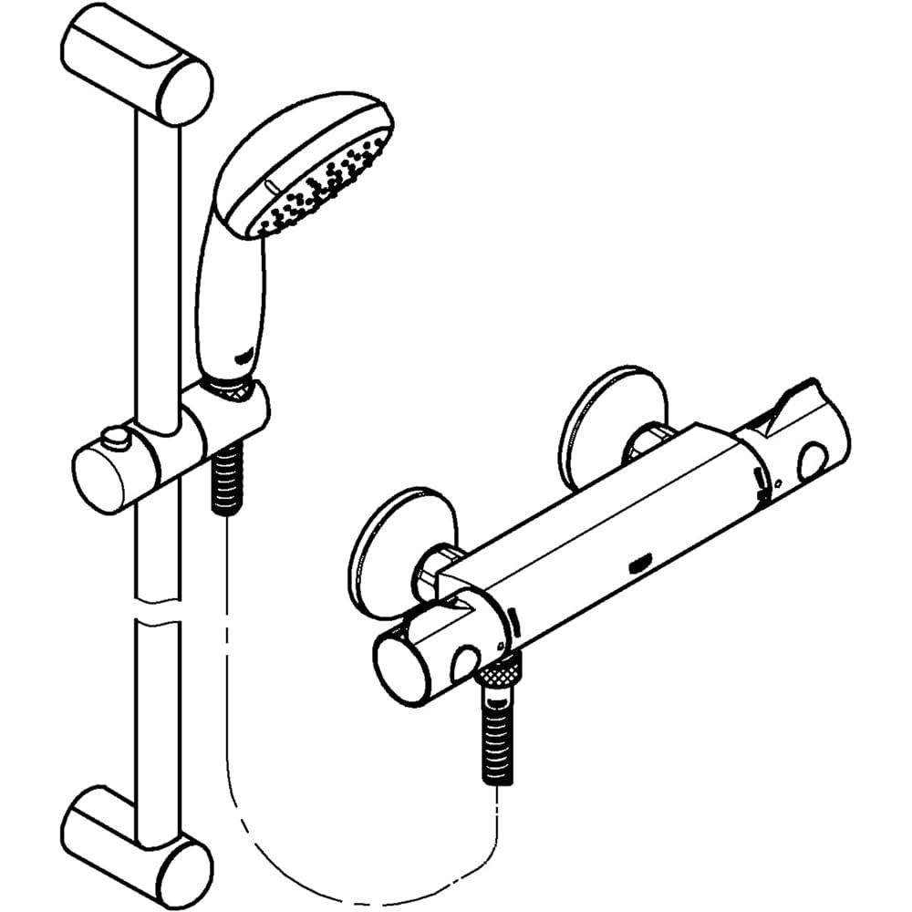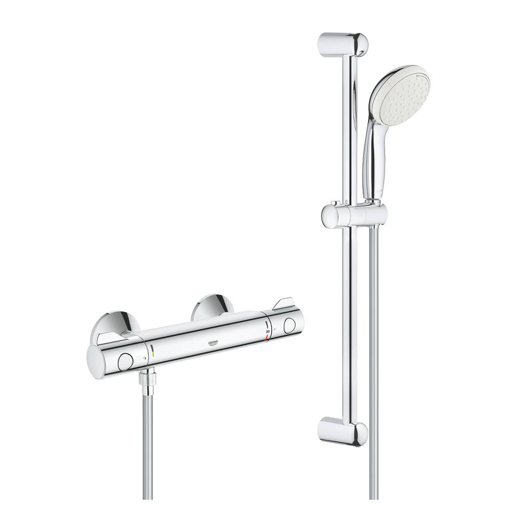 Composta da Grohetherm 800 miscelatore termostatico (34558) + tempesta set doccia 2 getti, asta da 600 mm (27598)