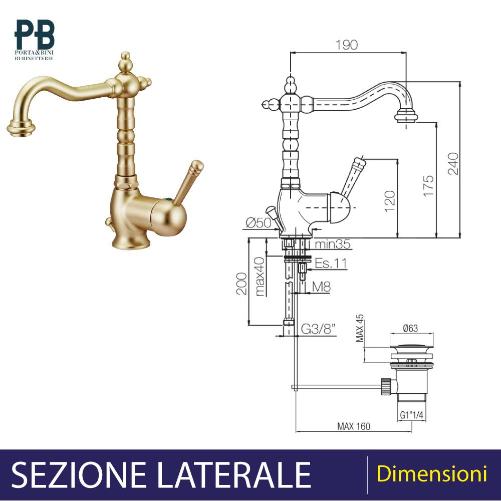 Disponibili nelle finiture: Cromo e Bronzo. Con piletta di scarico automatico 1"1/4. Cartuccia di ricambio Ø 35 mm due perni "0RC001". Aereatore classico in ottone F 22 x 1 "0RC044.BR/0RC044". Maniglie di ricambio "0RC430.BR/0RC430".