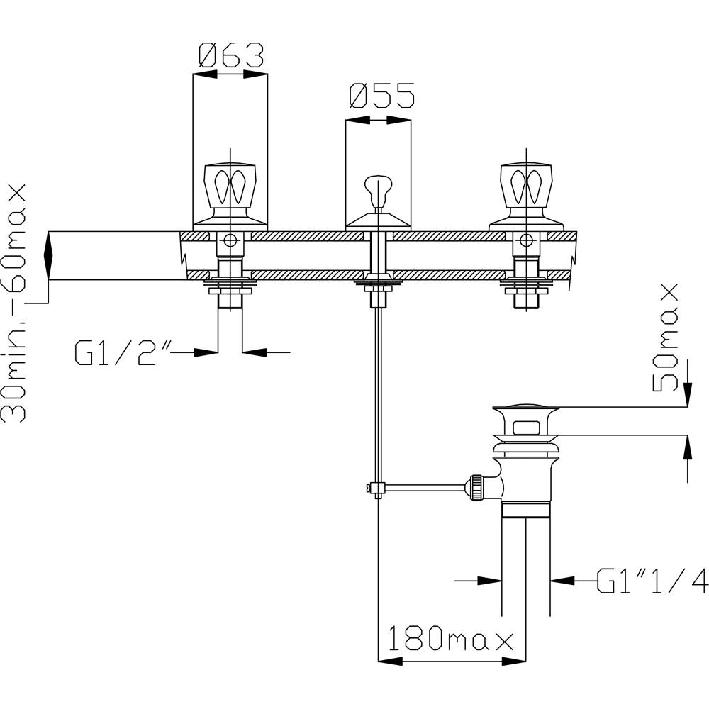 | 0404502 | BATTERIA BIDET TRADIZIONALE A TRE FORI Cromo + Piletta 1"1/4 1422