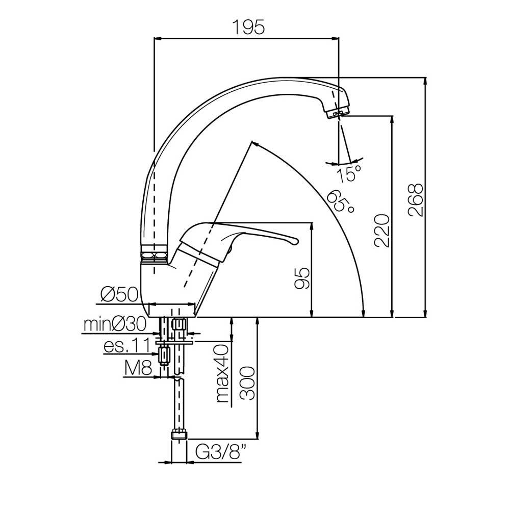 A canna conica, con leva laterale TIPO DI MATERIALE: ottone TIPO DI FISSAGGIO: da piano TIPO DI VALVOLA: cartuccia dischi ceramici ANGOLO DI ROTAZIONE: 90° CONNESSIONE DI ALIMENTAZIONE: flessibile inox 3/8" INTERASSE BOCCA DI EROGAZIONE: 195 mm NUMERO DI FORI PER L'INSTALLAZIONE: 1 DIAMETRO FORO DI INSTALLAZIONE: 35 mm
