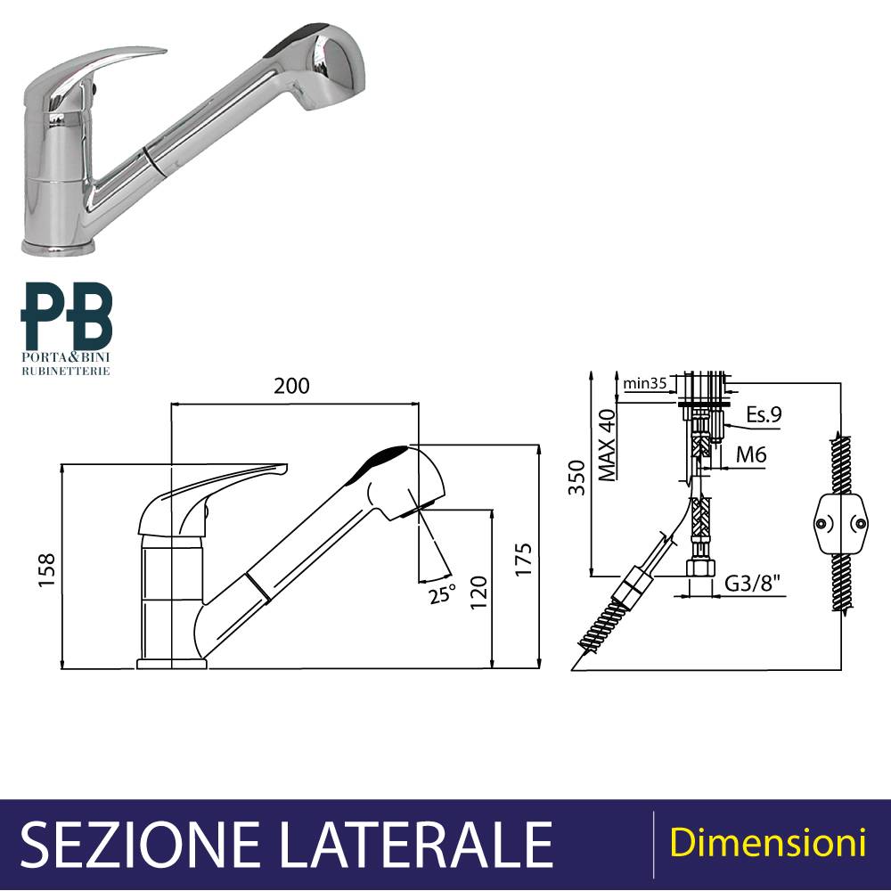 | 04116 | MISCELATORE LAVELLO CON DOCCETTA ESTRAIBILE PORTA&BINI Cromo 5080