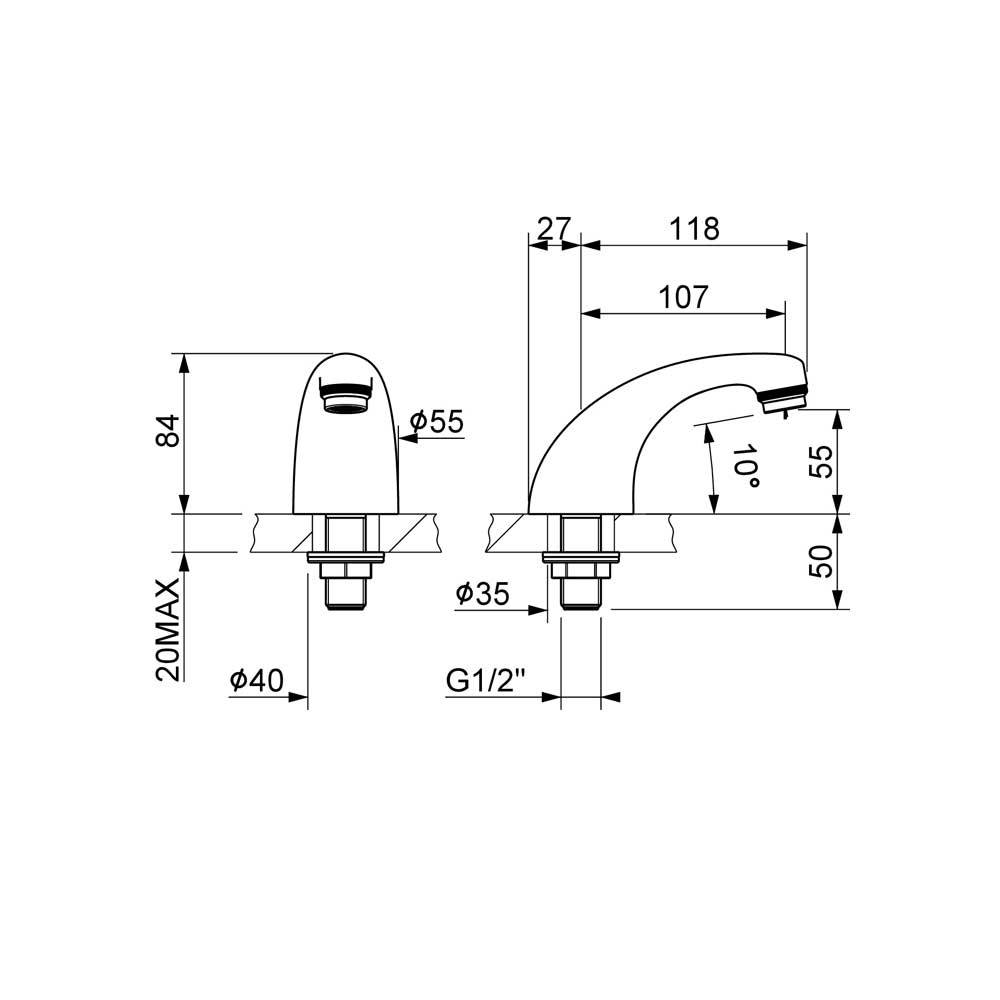 | 04156 | BOCCA DI EROGAZIONE LAVABO PER RUBINETTO A PEDALE Cromo - 1/2" 9014