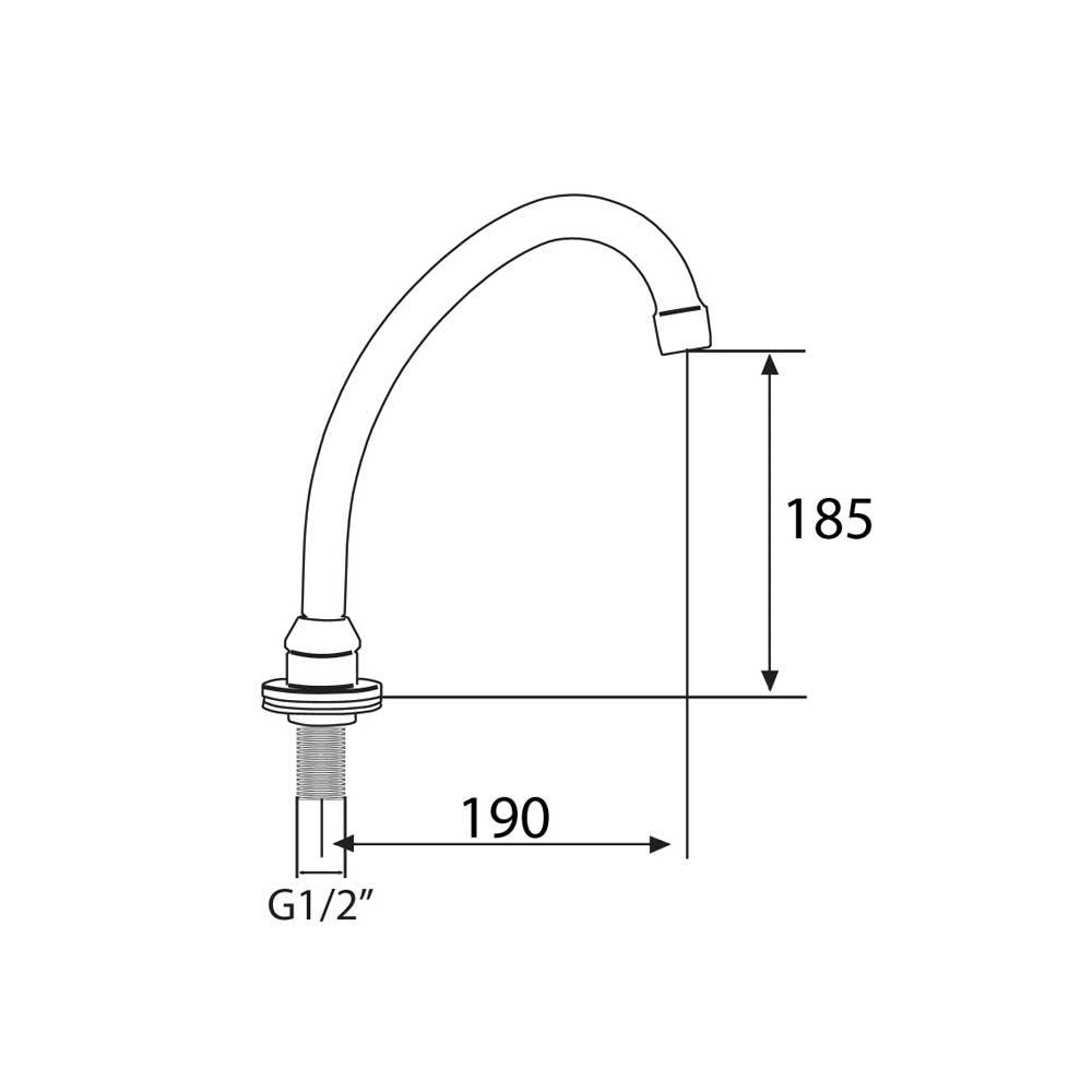 | 04164 | BOCCA DI EROGAZIOE "JOTA" A SNODO PER RUBINETTO A PEDALE 1/2" - H.185 mm