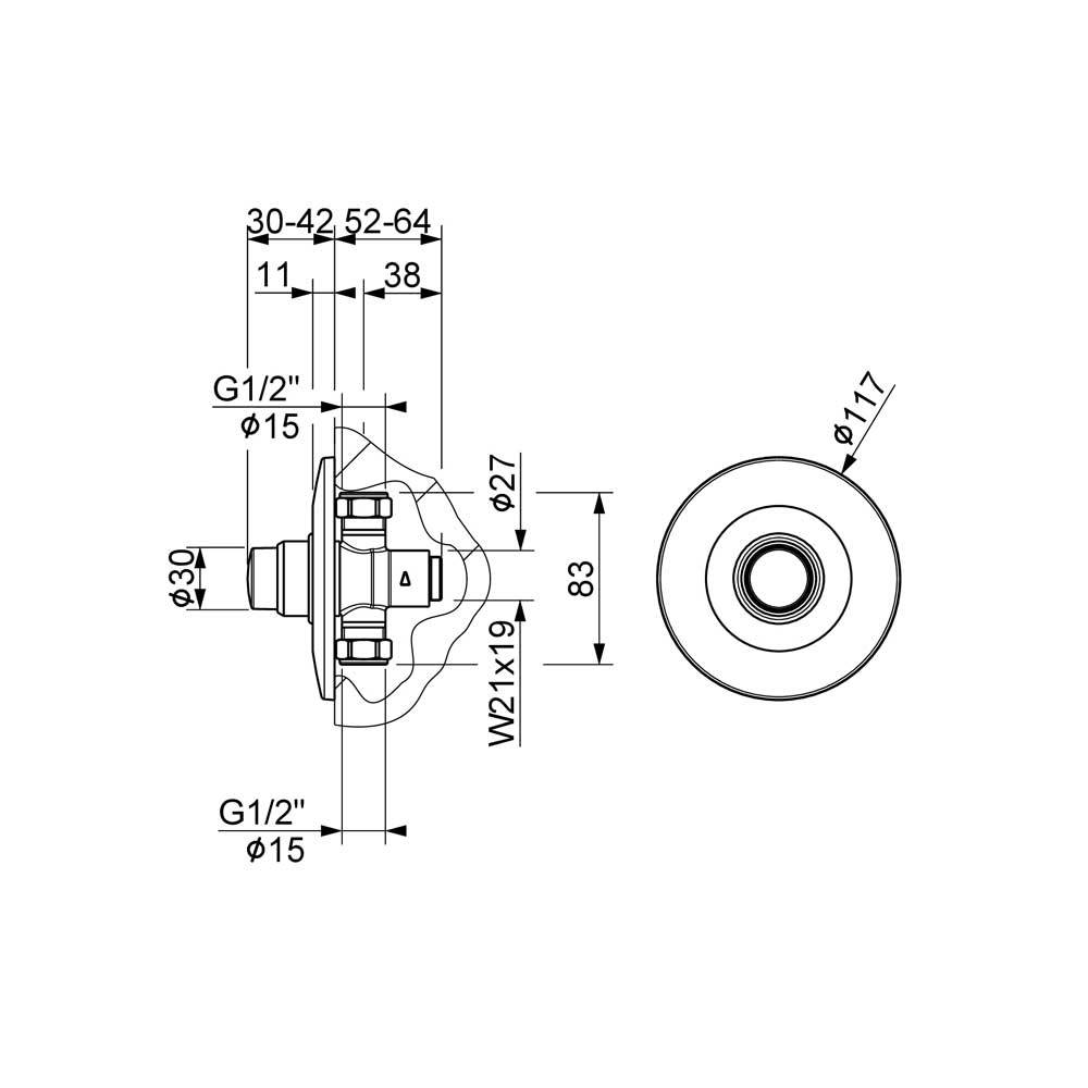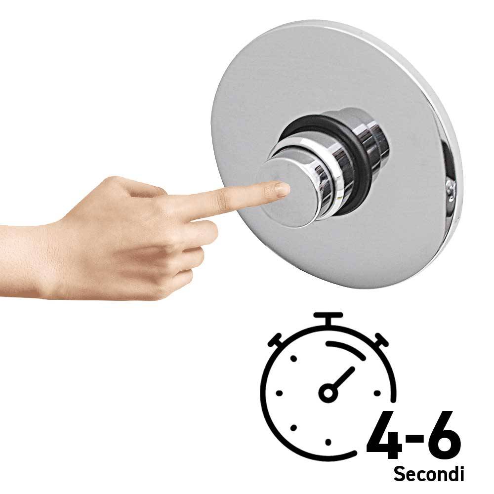 Rubinetto temporizzato 4-6 secondi per Doccia e orinatoio, comando a pulsante - Installazione ad incasso - Connessione filetto maschio G 1/2" Vitoni di ricambio nostri codici: - 04411 (tempo di apertura max. 15 secondi); - 0441902 (tempo di apertura max 40 secondi)